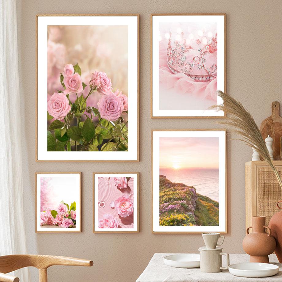 Розовая роза орхидея сакура корона цветок холст картина скандинавские постеры и принты настенные художественные картины для гостиной домашний декор