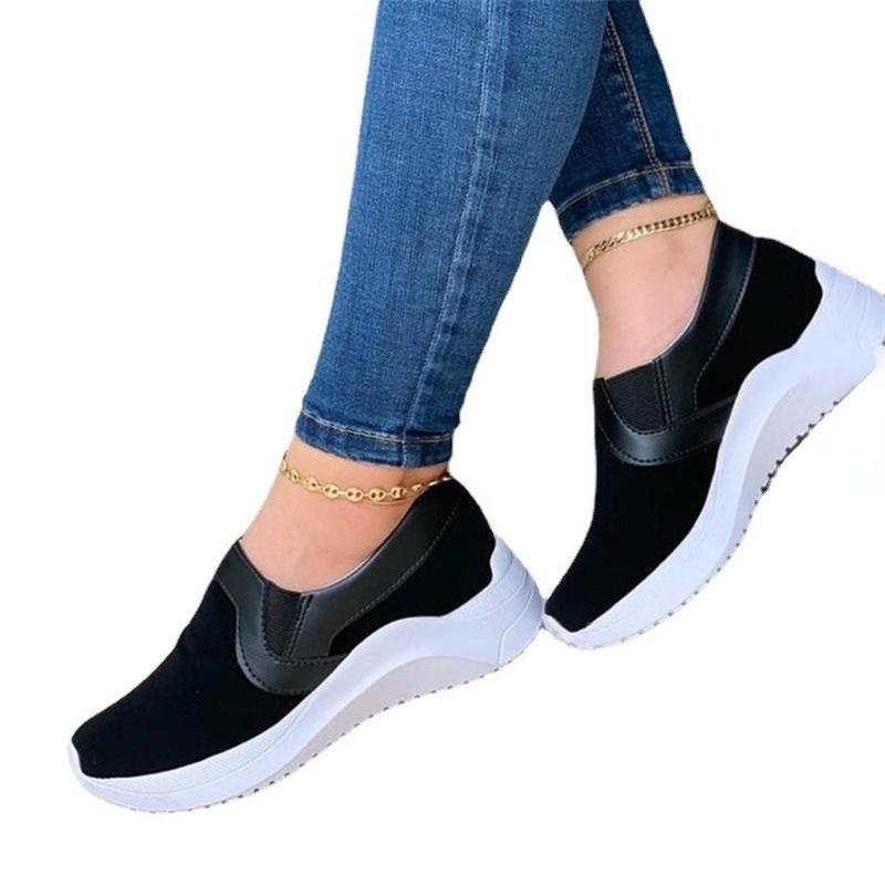 Новая осенняя женская обувь, модная уличная прогулочная обувь с круглым носком на танкетке и толстой подошвой, повседневная обувь без шнуровки на плоской подошве, женские лоферы