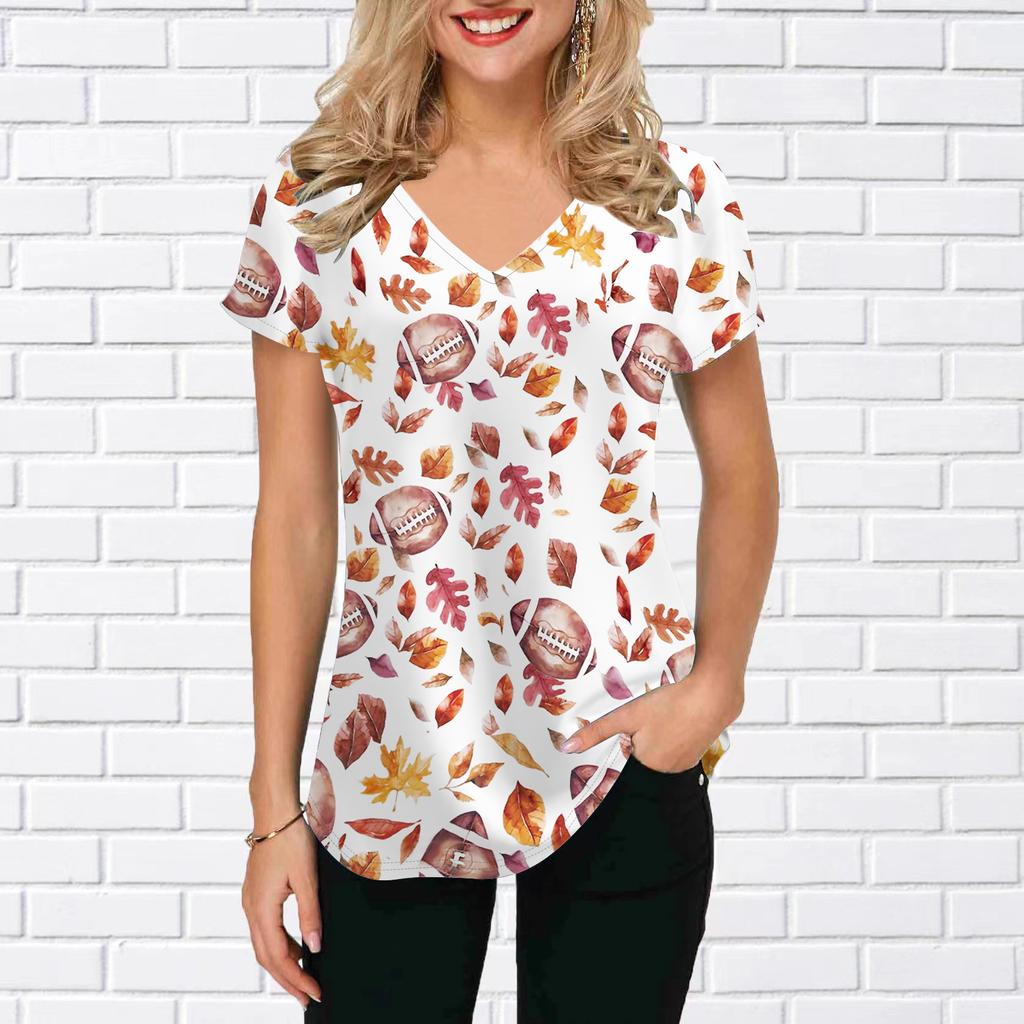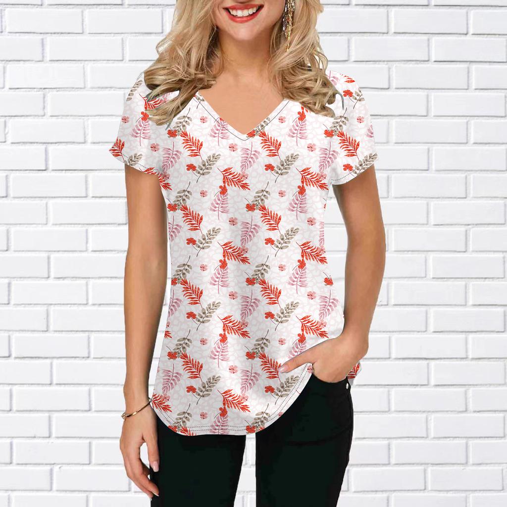Женские топы с v-образным вырезом и короткими рукавами, подсолнечник, синие цветы и растения, свободная футболка, повседневная блузка