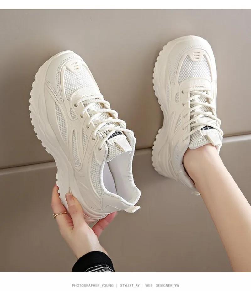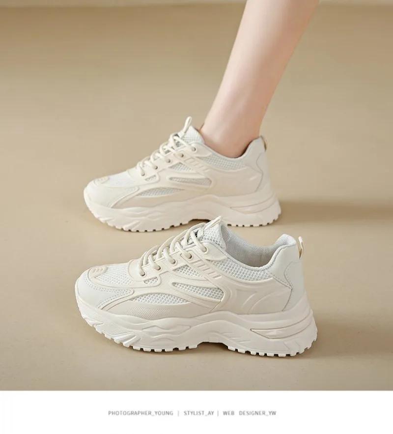 Белые кроссовки. Женские кожаные массивные кроссовки. Женская спортивная обувь. Толстая теннисная вулканизированная обувь. Обувь на платформе.