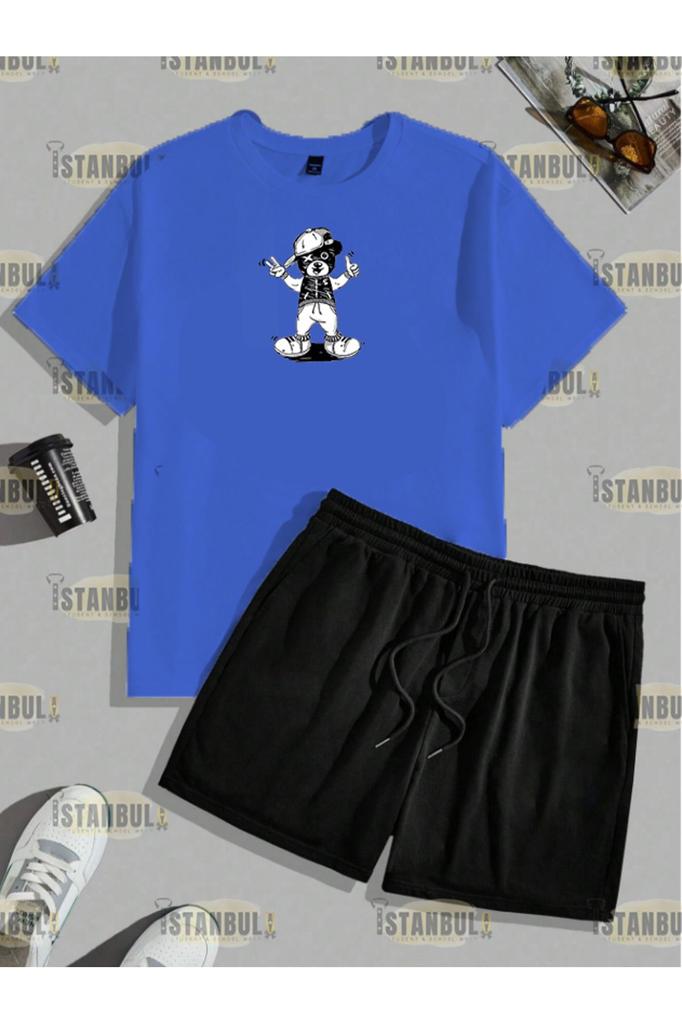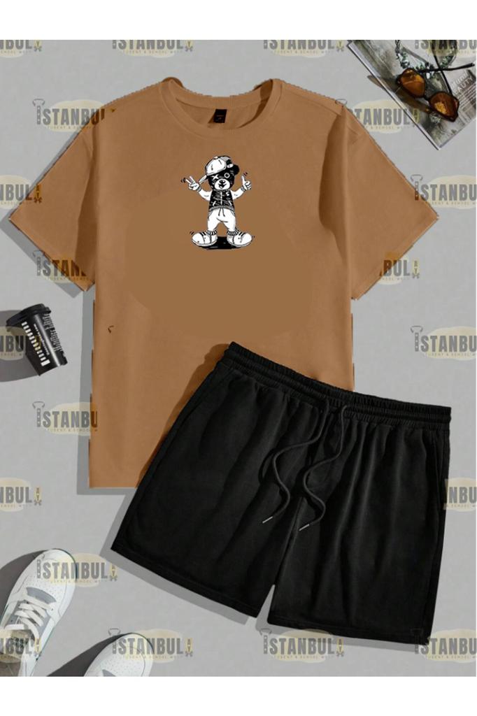 Мужской комплект больших размеров с низом и верхом Happy Street, футболка с принтом медведя, шорты, спортивный костюм, комплект с низом и верхом