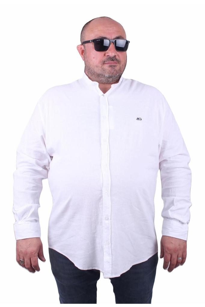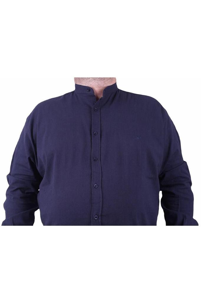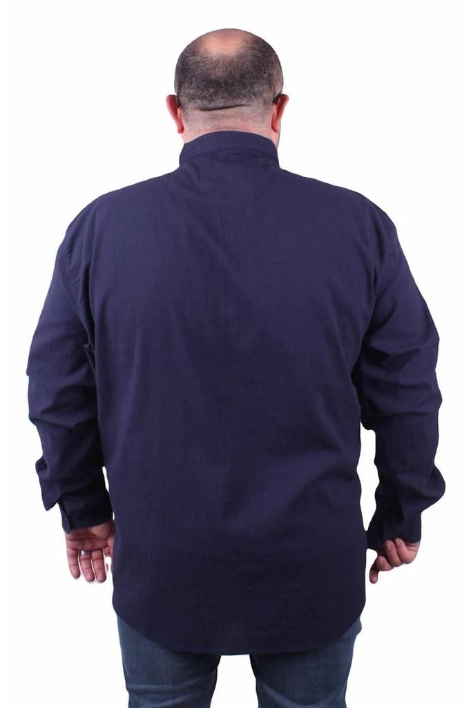 Мужская рубашка больших размеров больших размеров Мужская рубашка больших размеров из лайкры и льна с воротником темно-синяя