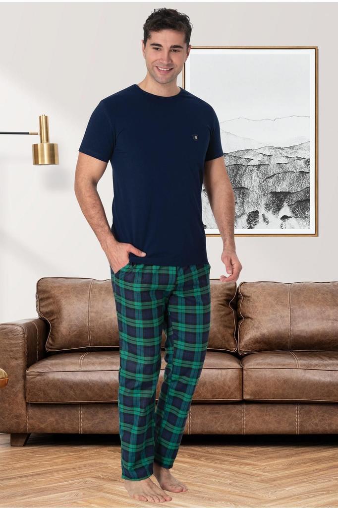 Мужской пижамный комплект больших размеров темно-синего цвета в клетку Мужской пижамный комплект больших размеров больших размеров