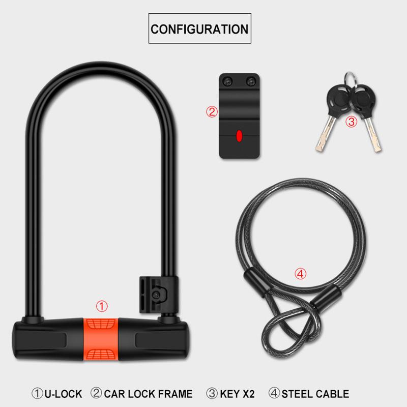 Противоугонный замок из углеродистой стали для велосипеда с U-образным замком, портативный мотоциклетный замок для горного велосипеда, защитный замок
