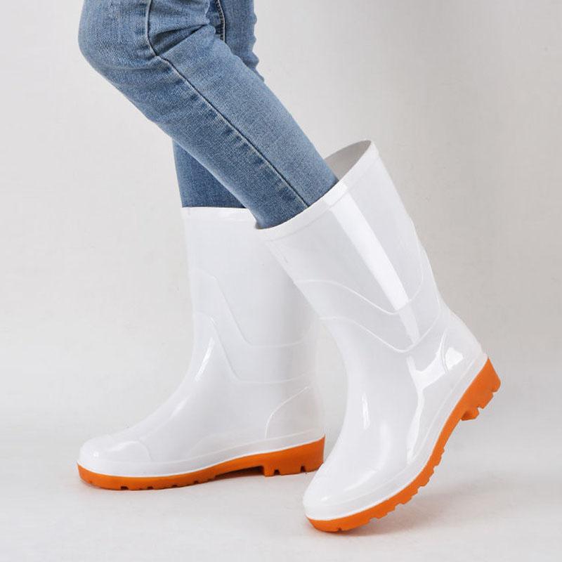 Белые дождевые туфли средней высоты, противоскользящие маслостойкие мужские и женские рабочие туфли для повара, резиновые сапоги