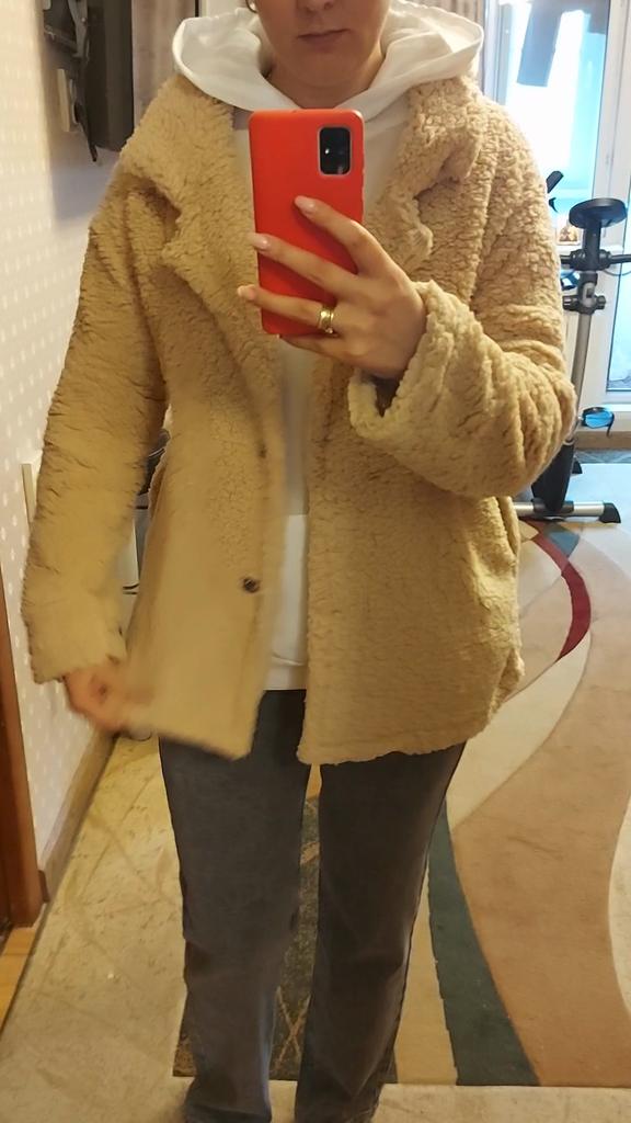 ЭТО очень плохо, к сожалению. На свой размер 52 взяла 5xl и свободно ЭТО не выглядит. Подстреленная длина (выше рубашки навыпуск), неровно подшитый низ. ЭТО не куртка, не жакет, а нечто бесформенное. От холода ЭТО не спасёт: подкладки нет, качество рыхлое. Для пущей красоты ЭТО тоже не накинешь: к красоте тут никаким боком не пристроишься. И цвет совсем не такой, как на фото, а поросячий какой-то. Выброшенные деньги, обидно. Даже такая цена слишком высока для такой поддергайки. Джуму спасибо за быструю доставку. Очень жаль, что столько служб трудится, чтобы доставлять такое позорище. Даже фотографировать стыдно.