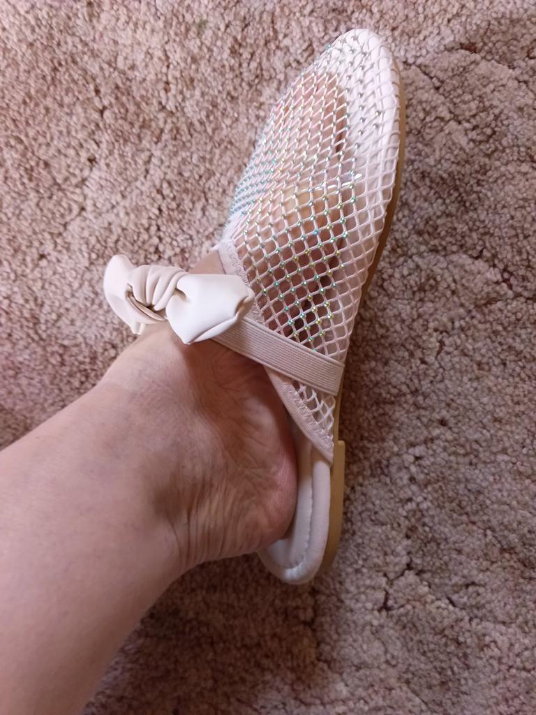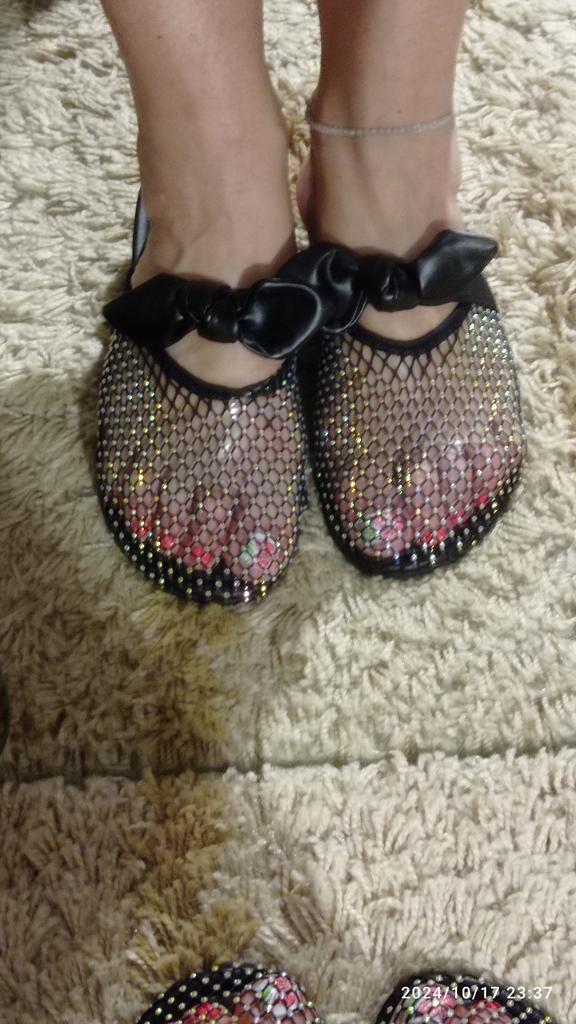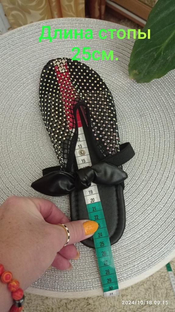 💥Классные тапулечки👍 по типу римских сандалий! Всё лето сопротивлялась, видя подобные, но к концу лета всё же сдалась🤓🤣и заказала! Очень захотелось "опробовать" 😉Новинку лета 2024 года! Теперь будут лежать и ждать своего часа😄🤗❗ 💥Из трёх цветов выбрала пока черный. 💥Материал стельки PU. 💥Верх-эластичная сетка. 💥Сверкают, конечно, как 1000 звёзд 🌟✨🌟! Сетка вся усыпана стразами! Одного стразика не досчиталась, но в общей массе этого не заметно! 💥Внутри, чтобы сетка не растягивалась, есть поддерживающая плёнка. 💥Подошва тонкая, но прочная. 💥Размер 39 подошёл идеально💯✨💯✨! Стопа моя по окружности 23,5см., а длина 24,8см.. 💥Есть эластичная резинка с бантиком, поэтому предполагаю, что носить сандалики можно двумя способами, показала в видео🎥🎥🎥! Кому интересно, могут посмотреть🤗 😊❗ По удобству пока не знаю, определю летом, но дома, по ковру очень удобно😂😂😉❗