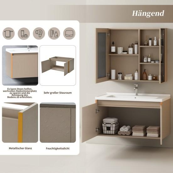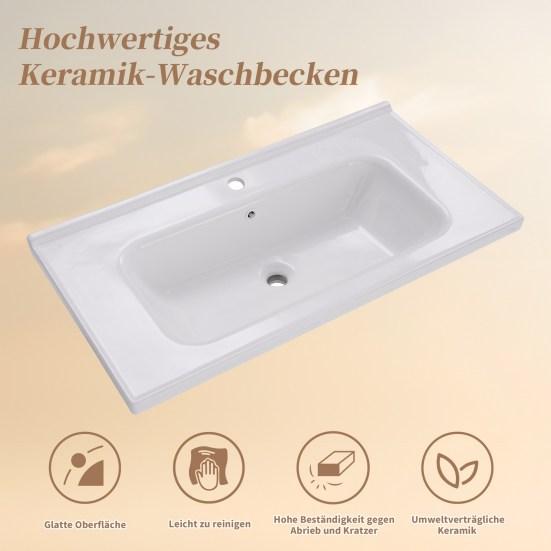 Высококачественная керамическая раковина: Легко чистить и обслуживать, керамическая раковина блестящая и прочная.. Он прочный, его нелегко поцарапать из-за высокой твердости, а также он обладает хорошей термостойкостью, что позволяет шкафу для ванной комнаты оставаться в хорошем состоянии после длительного использования..