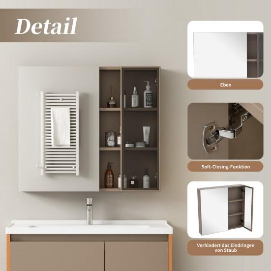 Большое место для хранения: Шкаф для ванной комнаты оснащен двухдверным шкафом для хранения вещей с большим количеством места, в котором удобно хранить все виды предметов первой необходимости и туалетных принадлежностей.. Шкаф для хранения за зеркалом спроектирован так, чтобы работать в сочетании с открытым пространством, предоставляя вам дополнительное место для хранения вещей и сохраняя ванную комнату аккуратной и организованной.