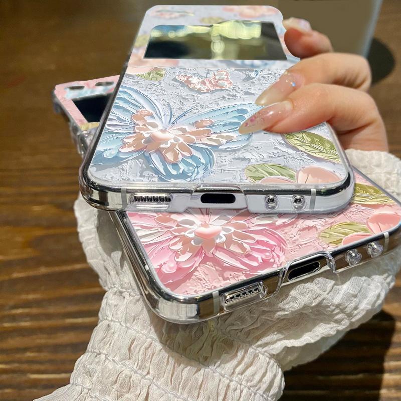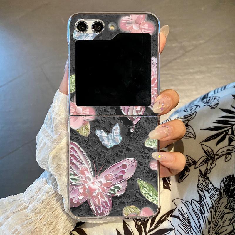 Картина маслом с рисунком бабочки 2 шт. Складной чехол для Samsung Galaxy Z Flip6 Flip5 Flip4 Flip3 Тонкий противоударный прозрачный жесткий чехол для телефона из ПК