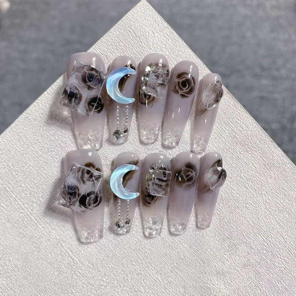 2. Нанесите желейный клей или клей на обратную сторону накладных ногтей.