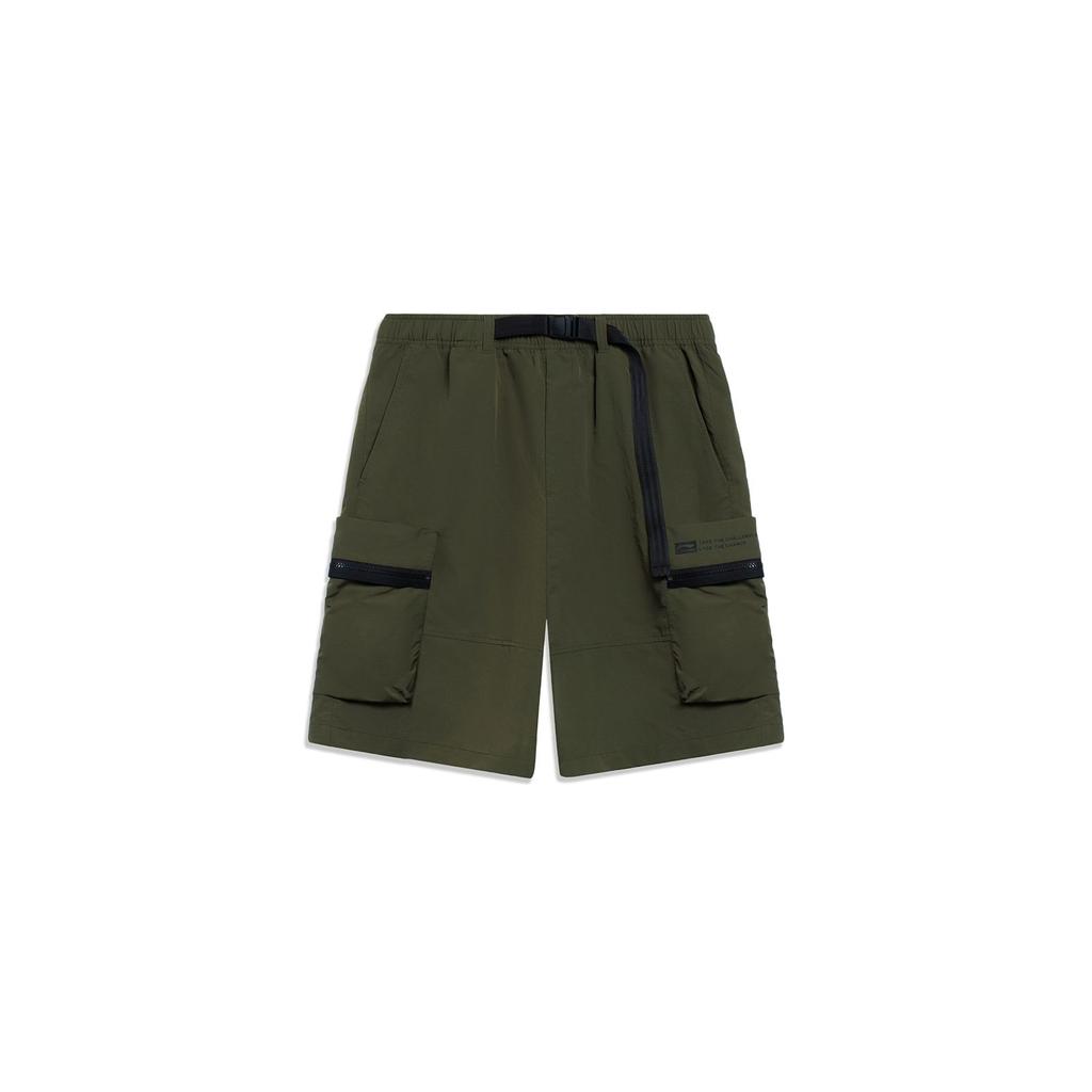 Li-Ning Спортивные шорты с буквенным принтом, свободные, прямые, мужские, темно-оливково-зеленые, AKST643-3