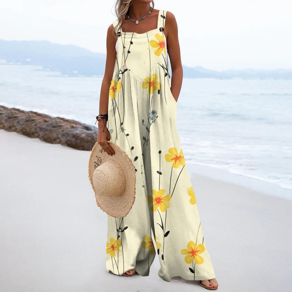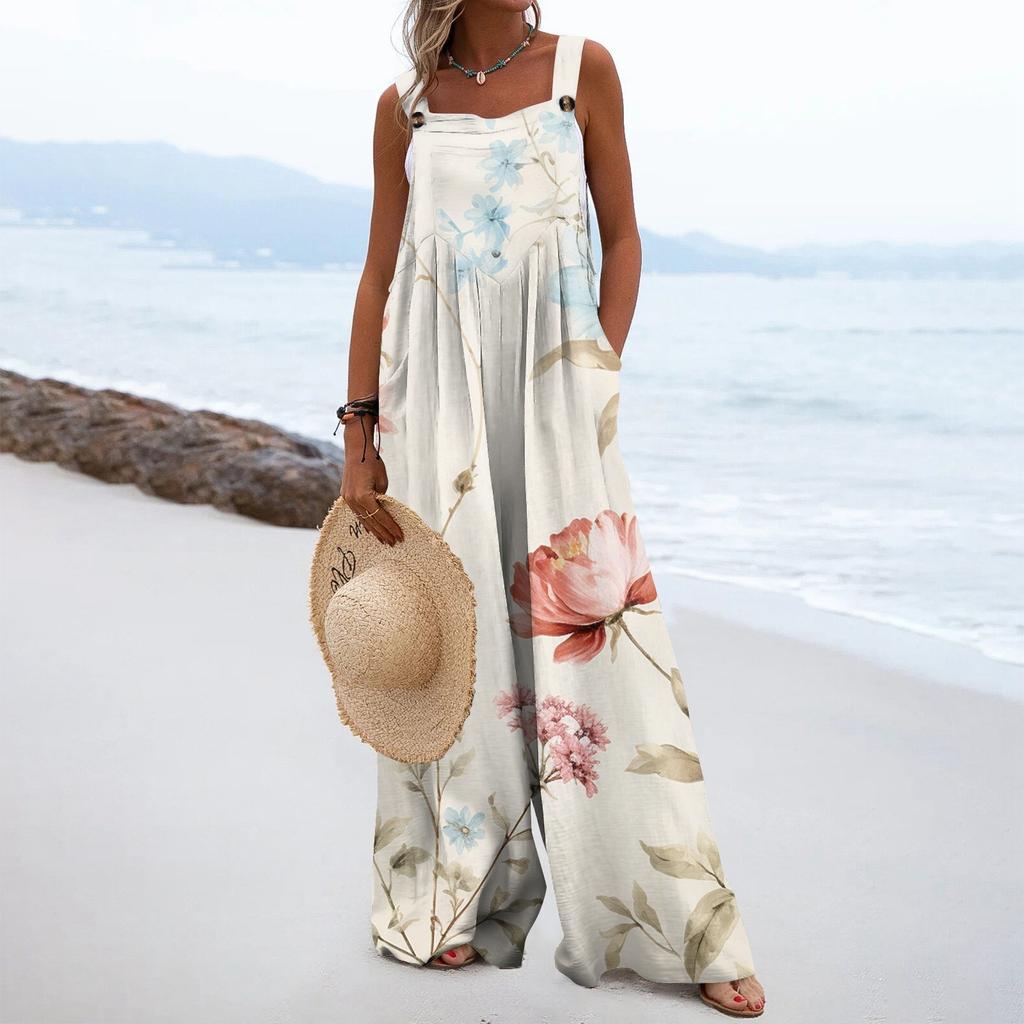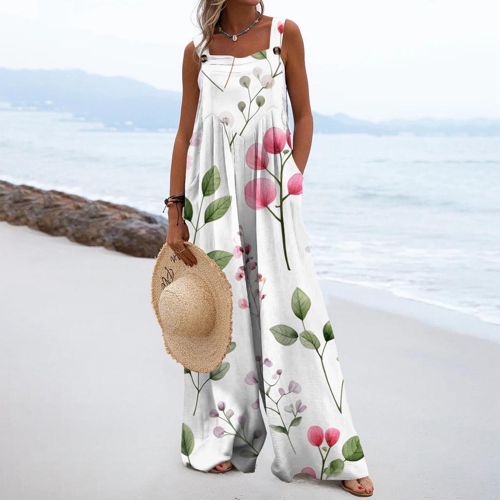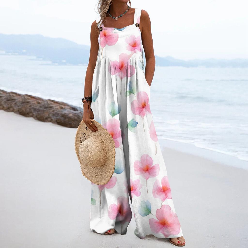Женский модный свободный комбинезон без рукавов с цветочным принтом и карманами