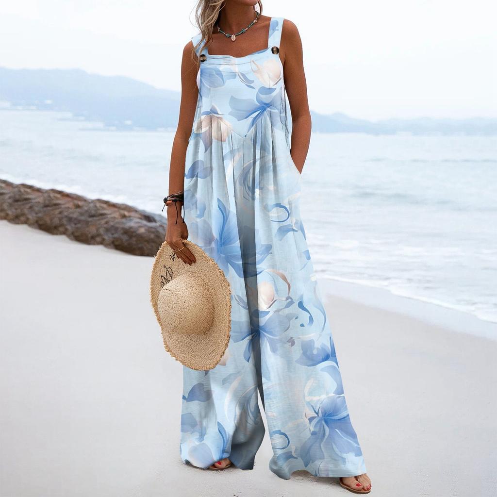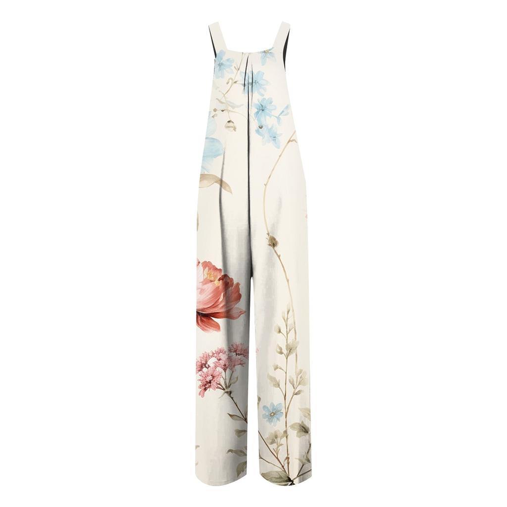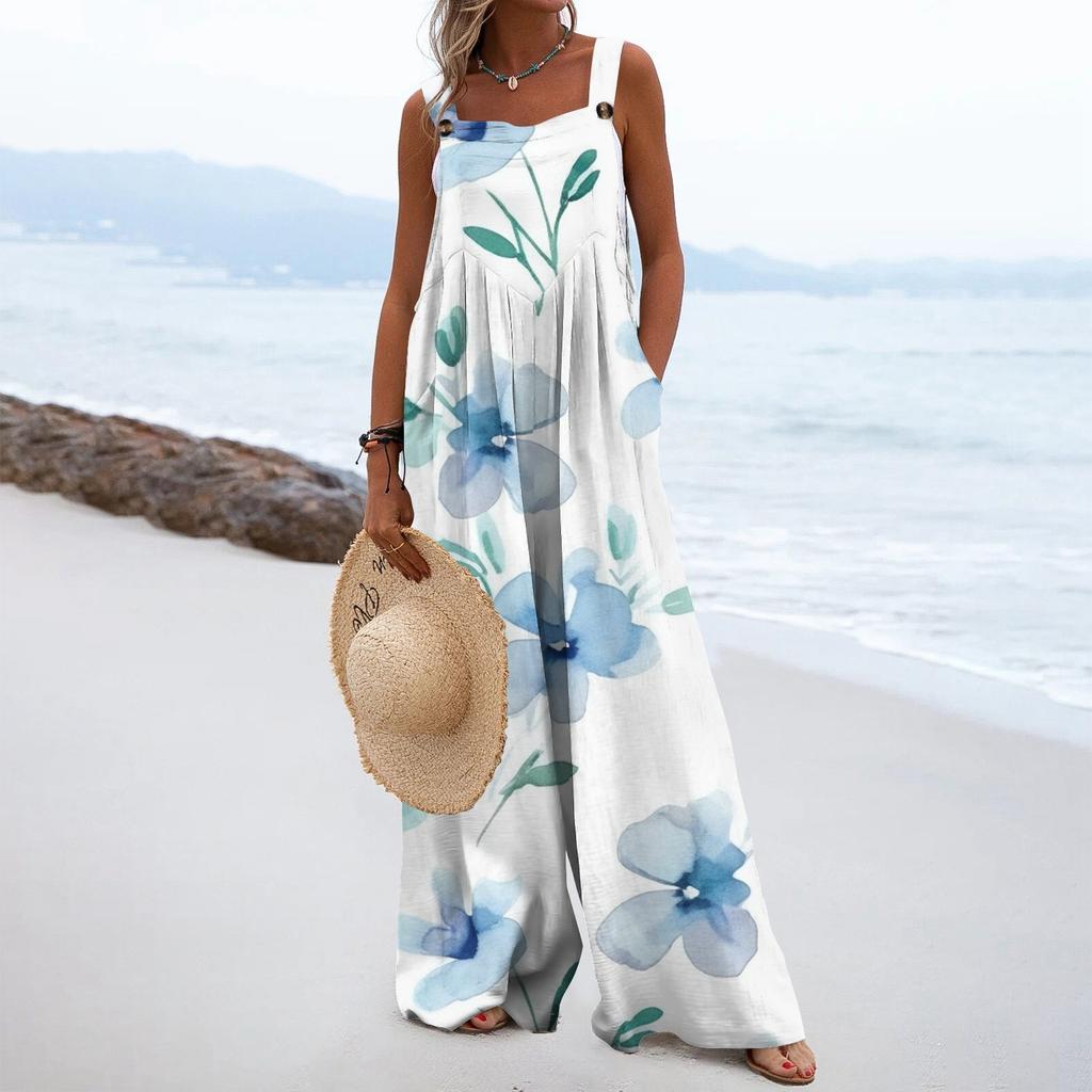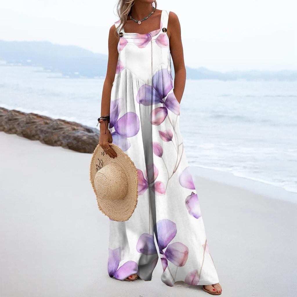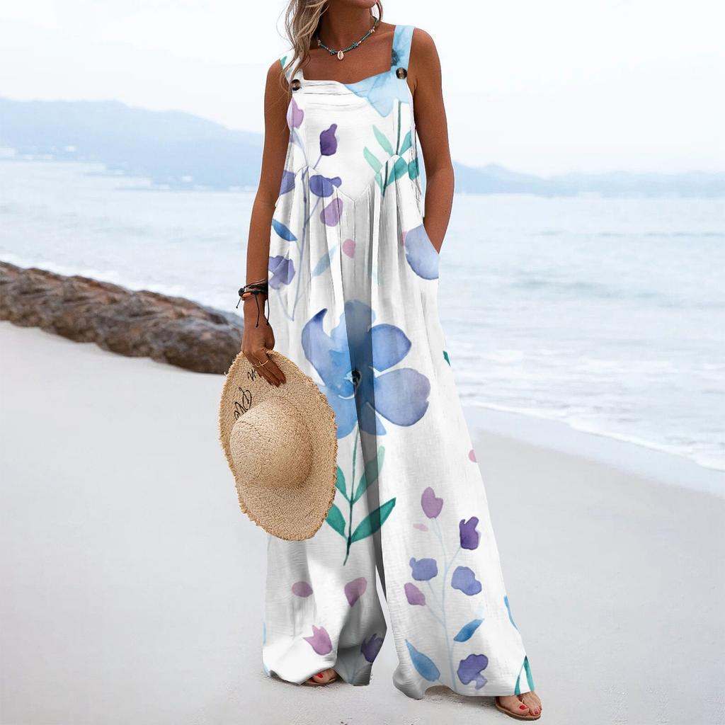 Женский модный свободный комбинезон без рукавов с цветочным принтом и карманами