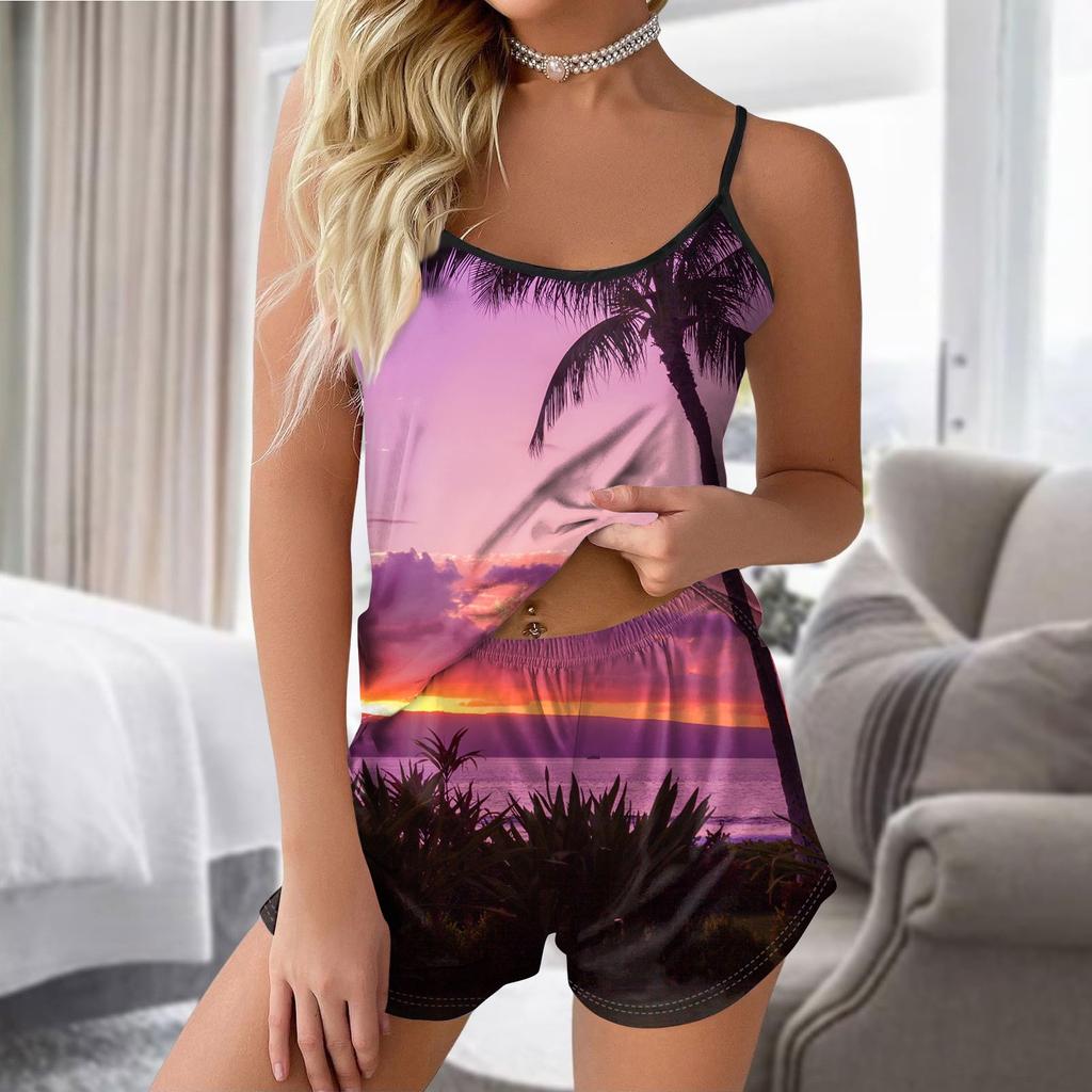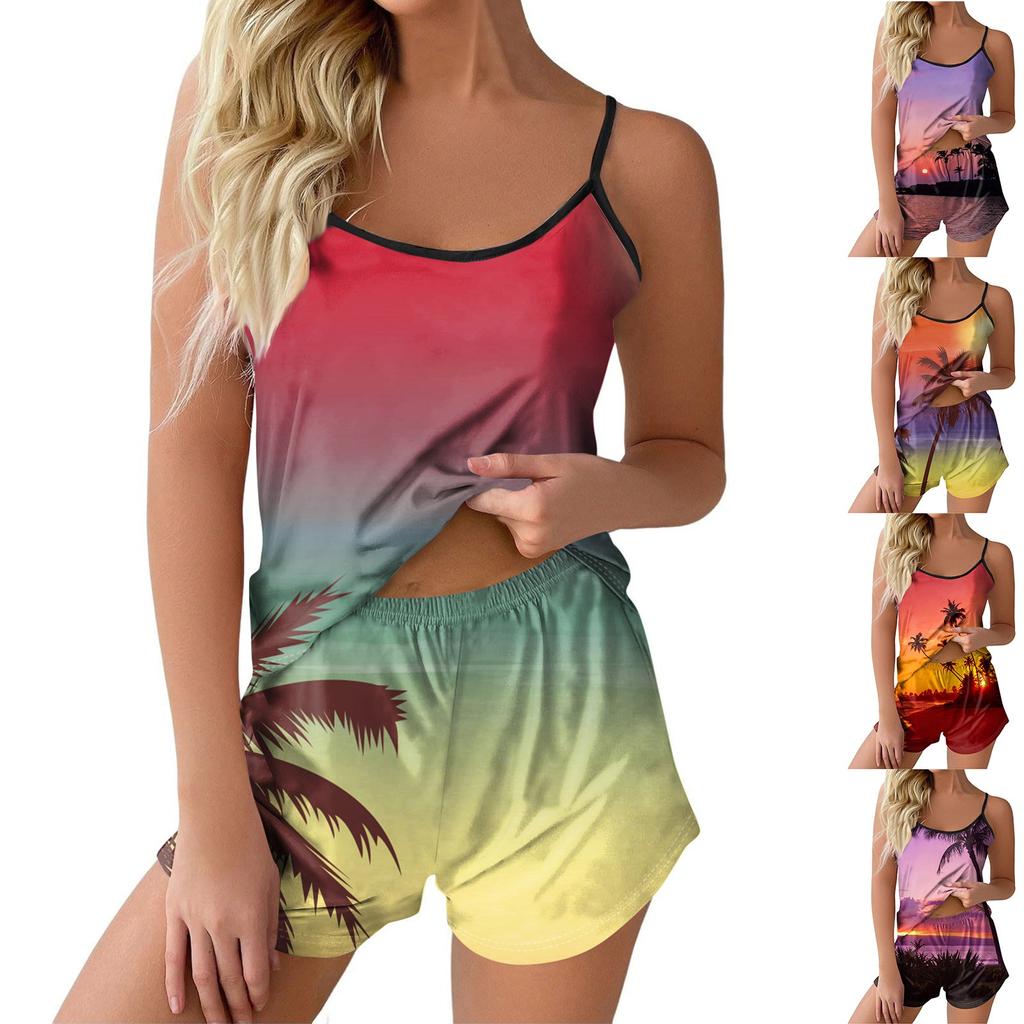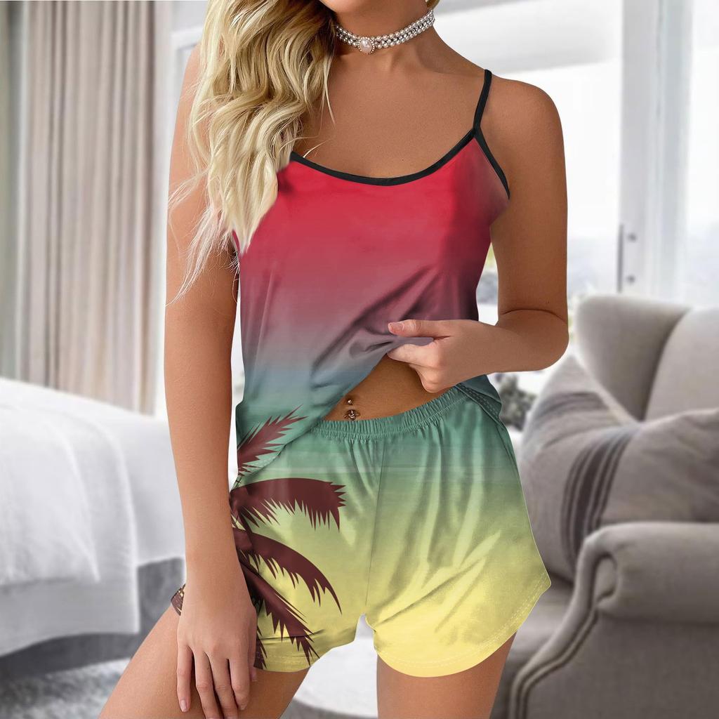 Пижамные комплекты для женщин, мягкие комплекты домашней одежды из двух предметов, топы без рукавов, шорты, одинаковые пижамы, одежда для сна