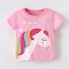 Футболка из хлопка детская с короткими рукавами, летняя новая футболка из хлопка для девочек, детская футболка с круглым вырезом и рисунком в виде мультфильма