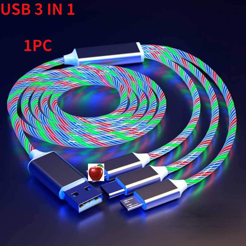 1 шт. светящийся светодиодный кабель USB 3 в 1 для телефона, зарядное устройство для быстрой зарядки, светящийся кабель типа C