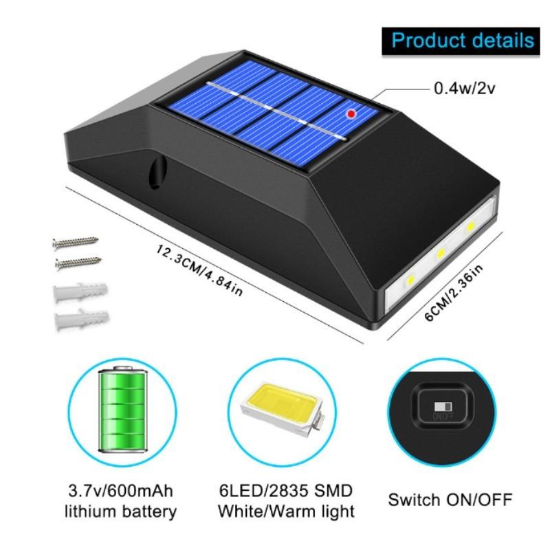 2000LM Солнечный Свет Водонепроницаемый Светодиодный Настенный Светильник Наружный Солнечный Свет Световой Забор Лампа Для Сада Уличный Пейзаж Декор Балкона