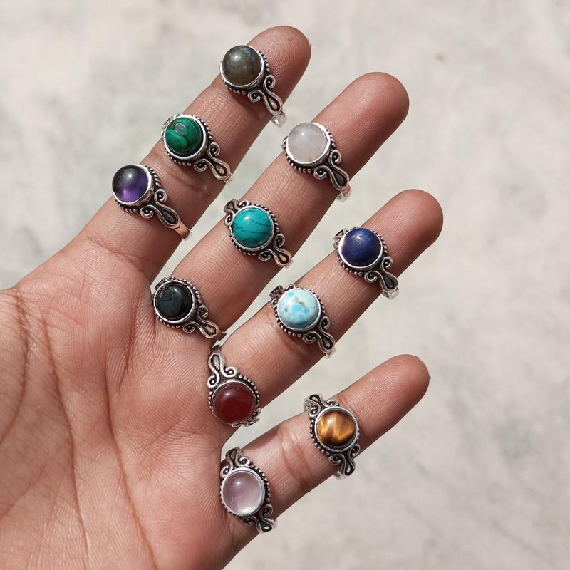 Tiger Eye & Mix Gemstone 925 Sterling Silver Plated Women 10 PCs Rings JN-77
