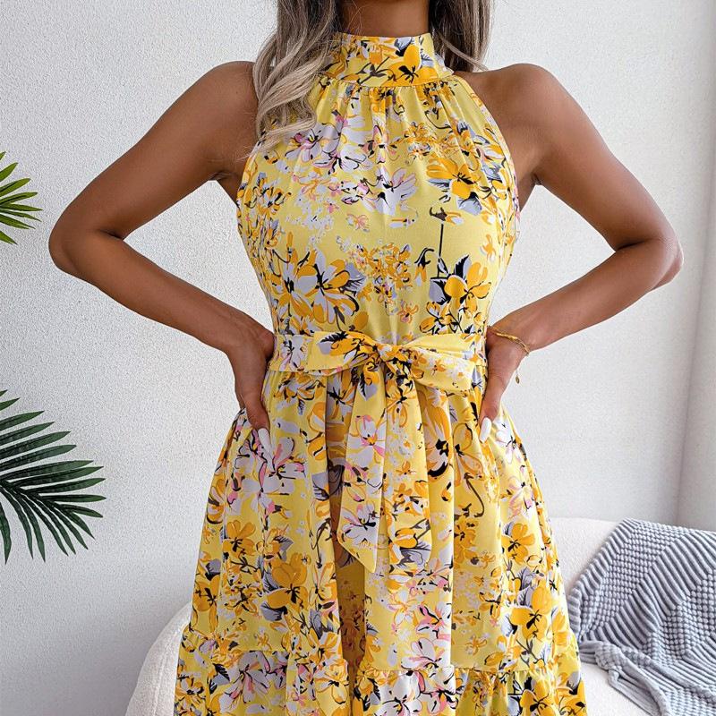 BITCED Женские летние платья без рукавов с цветочным принтом и подвесной талией