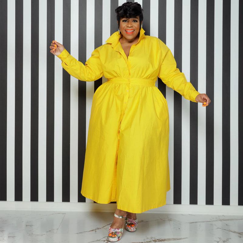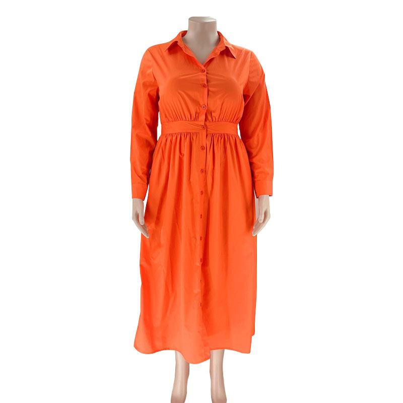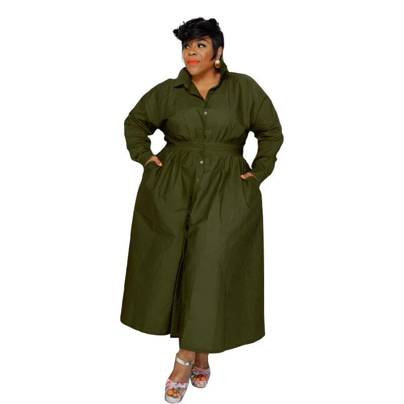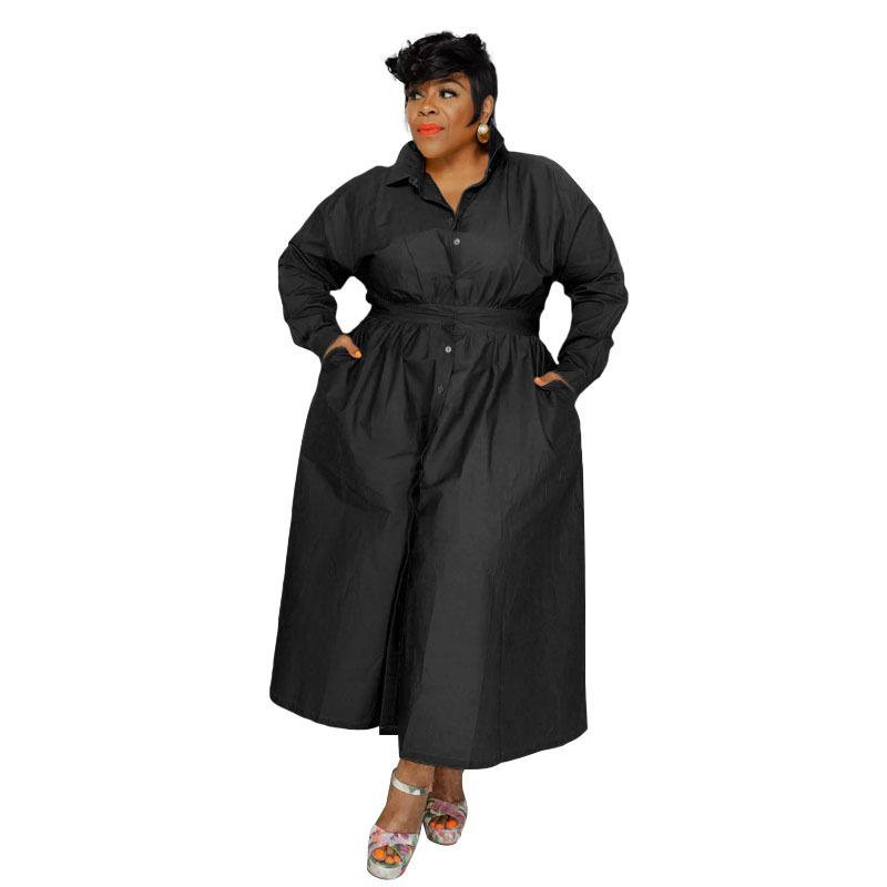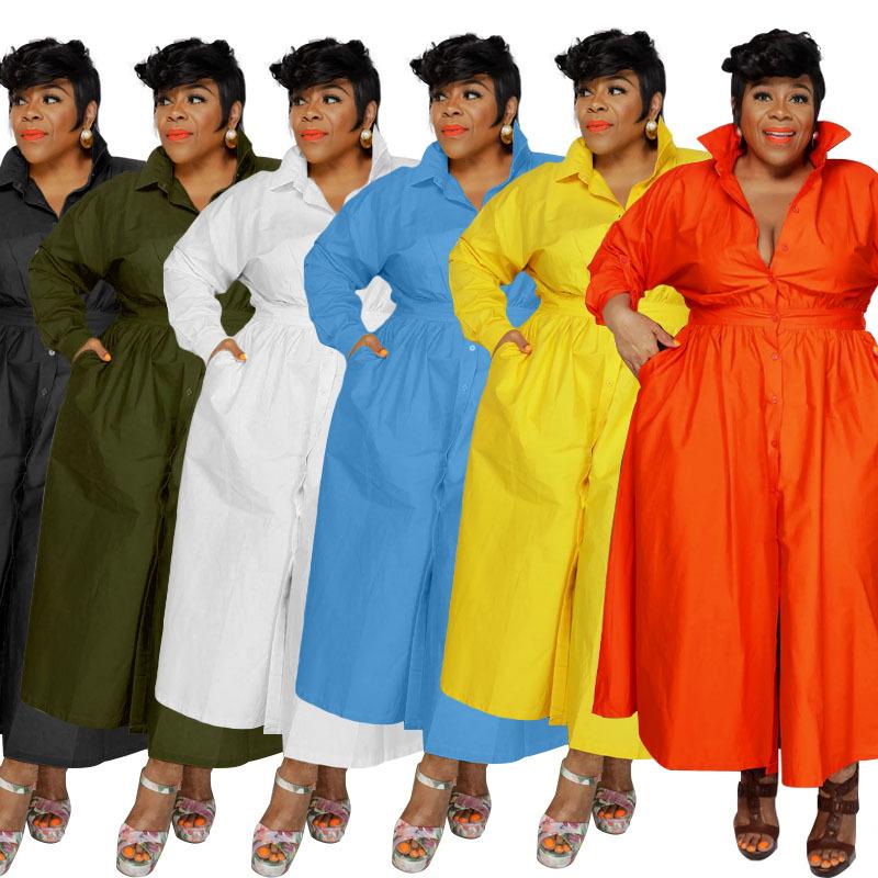 Однобортное однобортное платье-рубашка с длинными рукавами, однотонное с лацканами, модное женское платье больших размеров