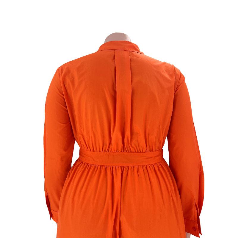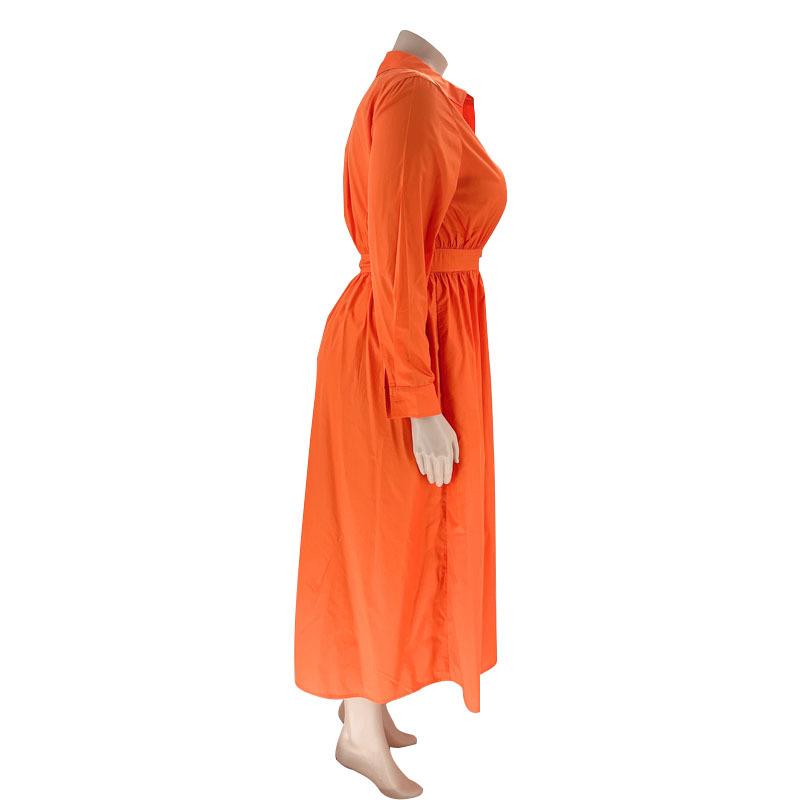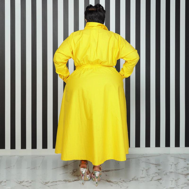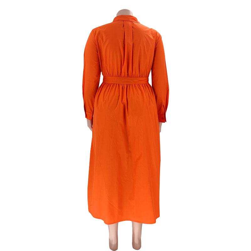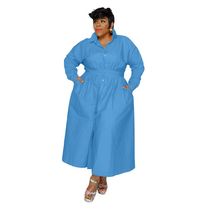 Однобортное однобортное платье-рубашка с длинными рукавами, однотонное с лацканами, модное женское платье больших размеров