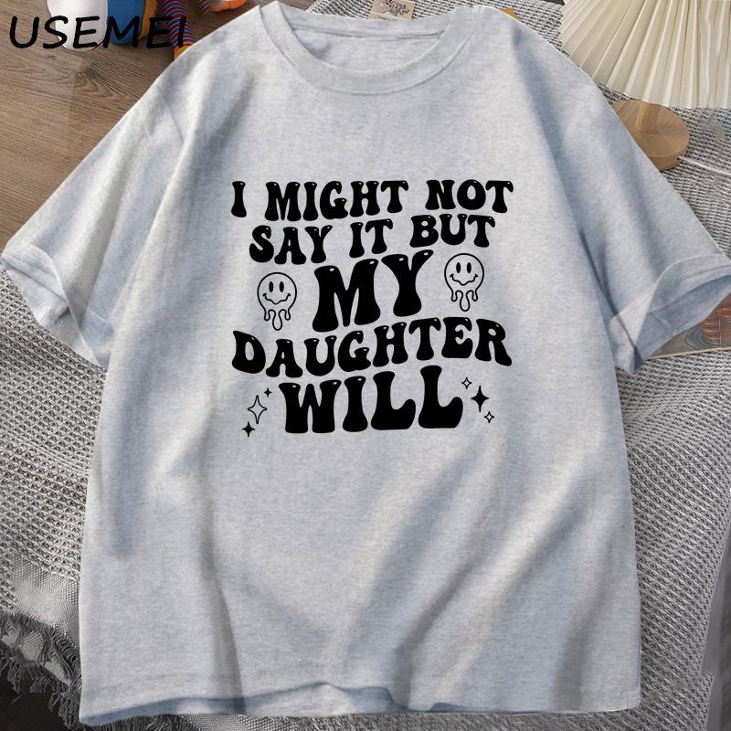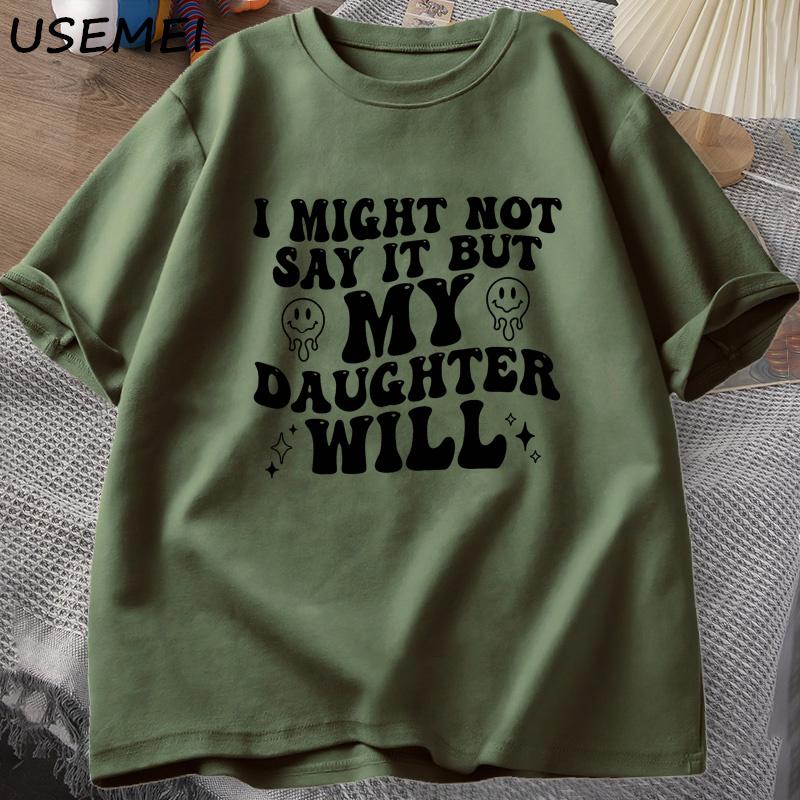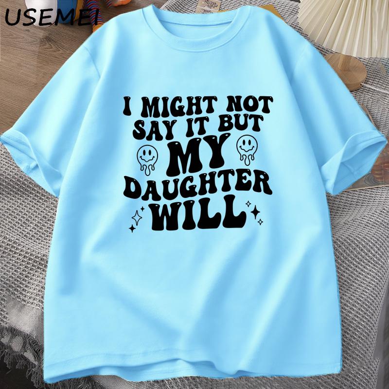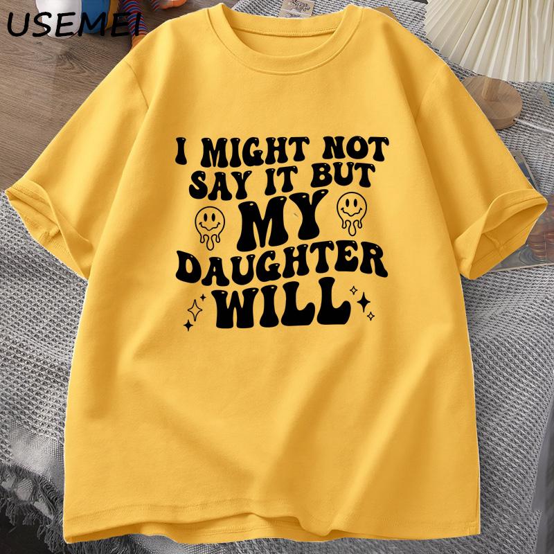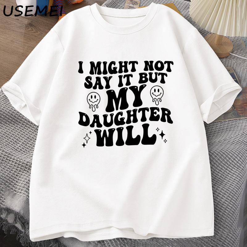 Я могу этого не говорить, но моя дочь скажет. Футболки. Смешная футболка для мамы и папы. Женская и мужская хлопковая футболка с принтом. Повседневные топы с одним вырезом.