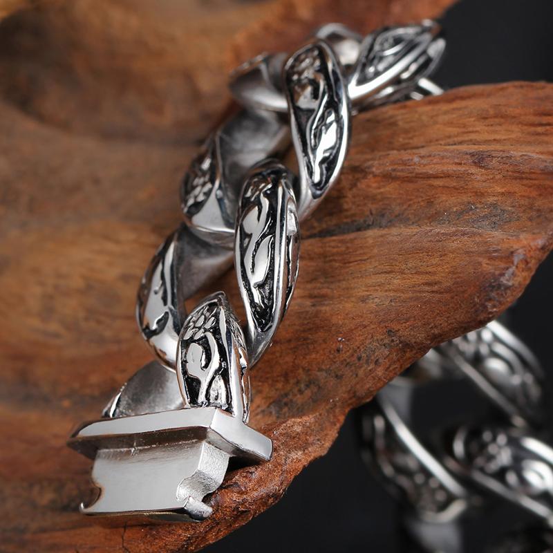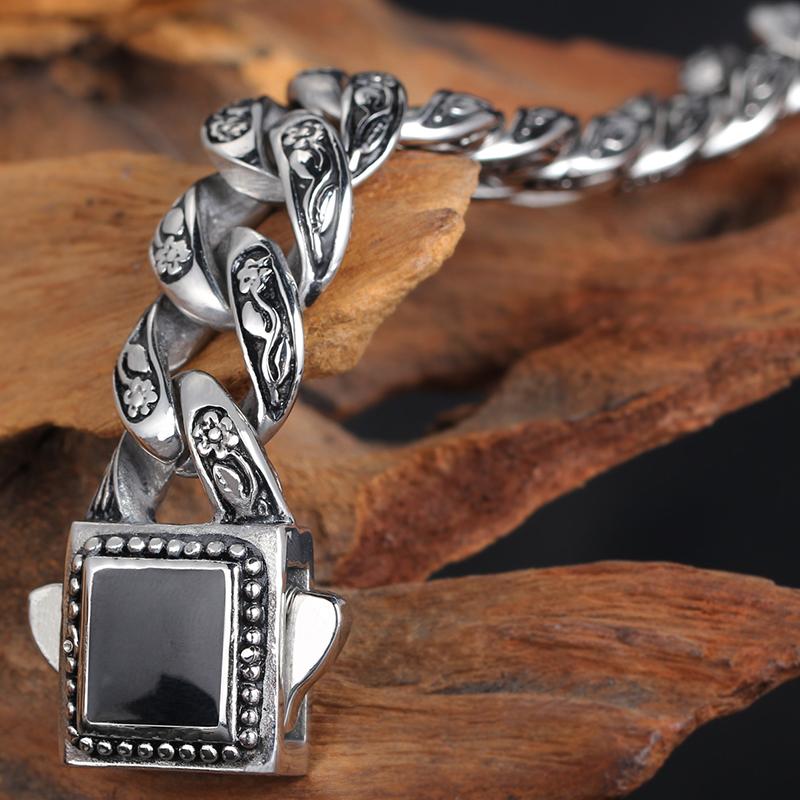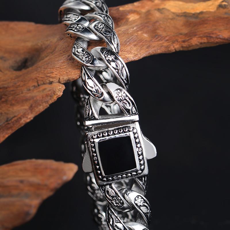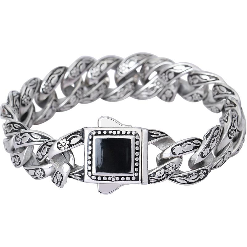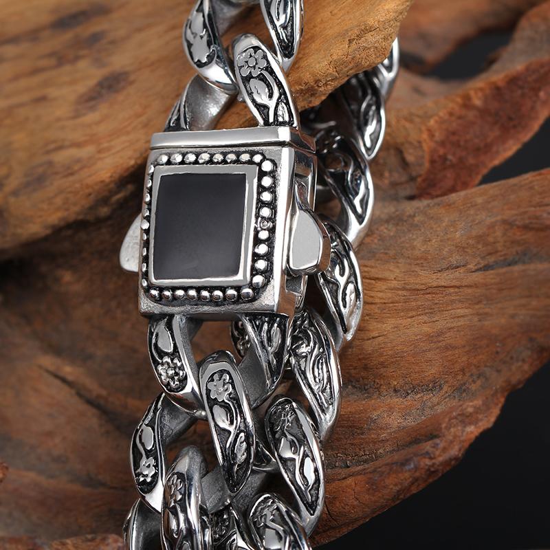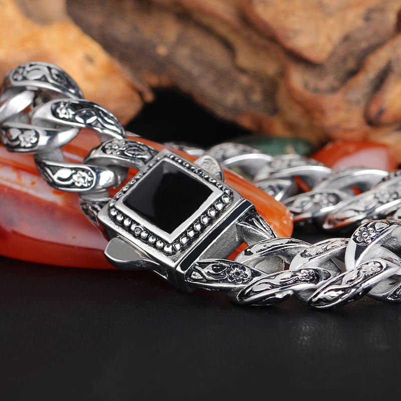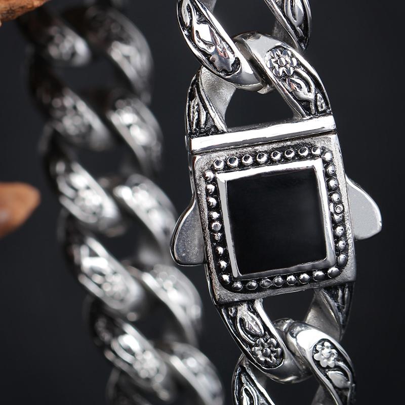 Ретро 8/9 дюймов браслет с розовой линией для мужчин, черный оникс со вставкой из нержавеющей стали, мужские браслеты с цепочкой, манненская повязка, ювелирные изделия