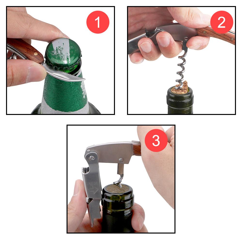 Профессиональная открывалка для вина из нержавеющей стали, портативный винт, штопор, деревянная ручка, многофункциональная открывалка для бутылок вина, барные кухонные инструменты
