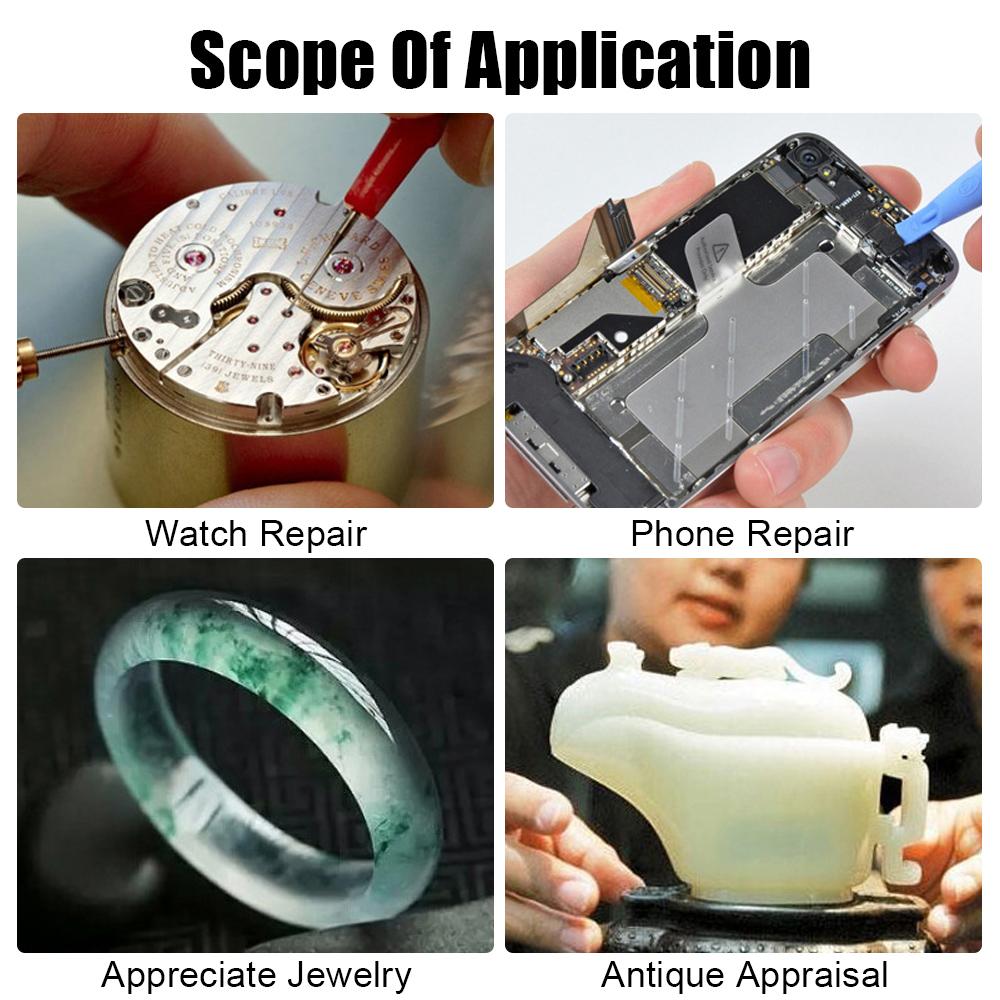Широкий спектр применения: подходит для чтения книг, покрасочных ремесел, шитья, декоративных растений, ремонта различных прецизионных деталей, ремонта часов, ремонта мобильных телефонов, ремонта печатных плат, оценки ювелирных изделий и т. Д.