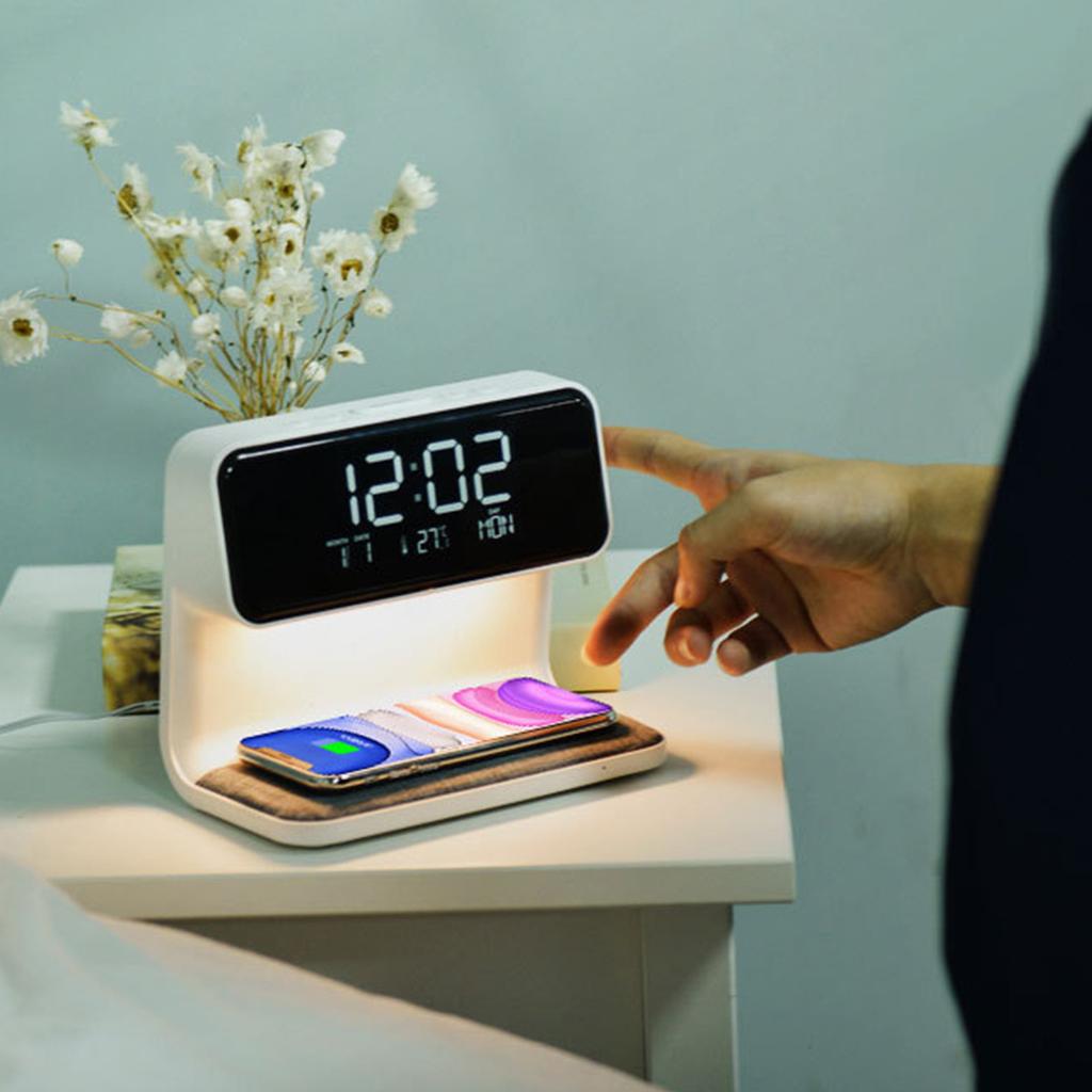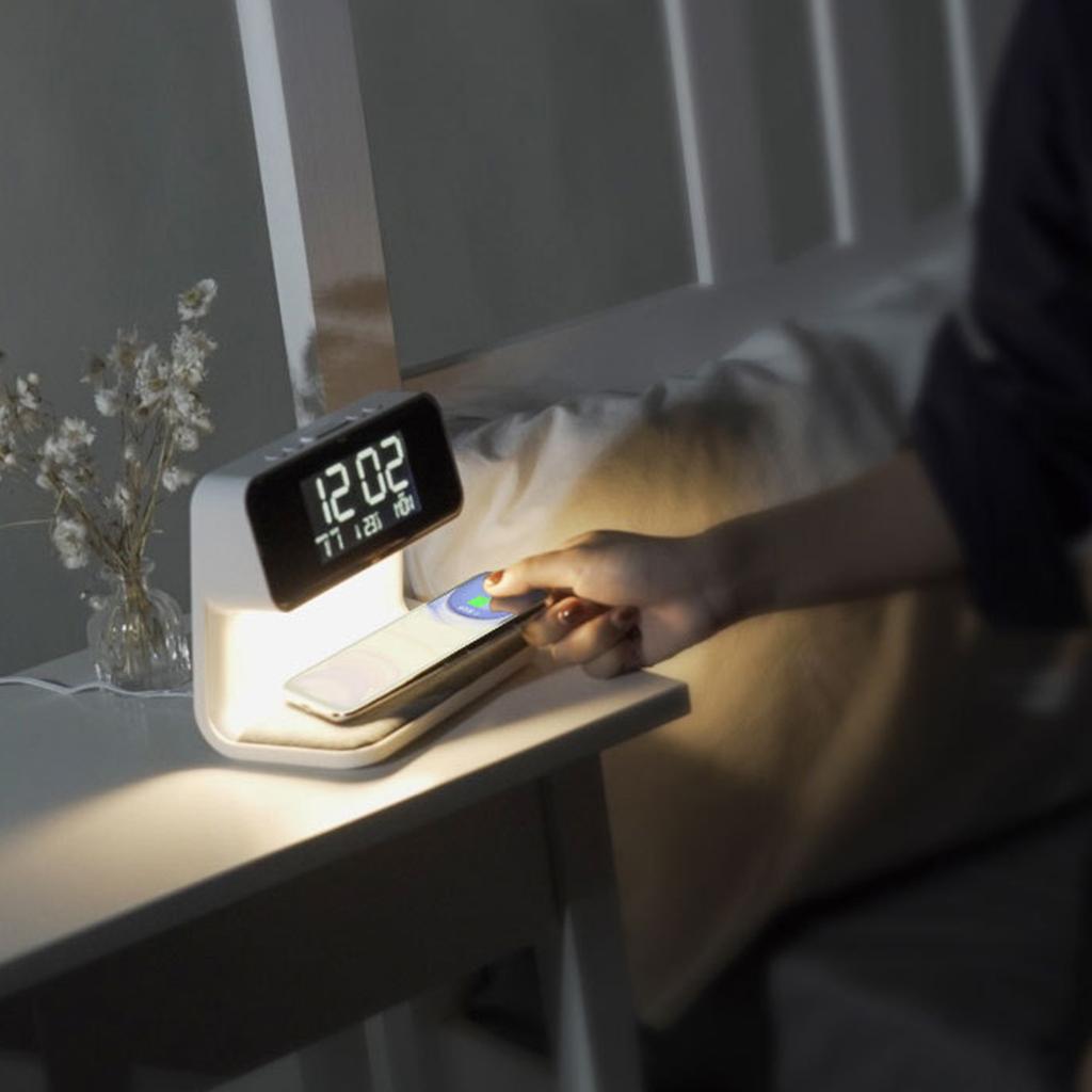 Большой экран, вечный календарь, студенческие часы, настольная лампа, встроенная прикроватная тумбочка для мобильного телефона с беспроводной зарядкой, небольшой ночник