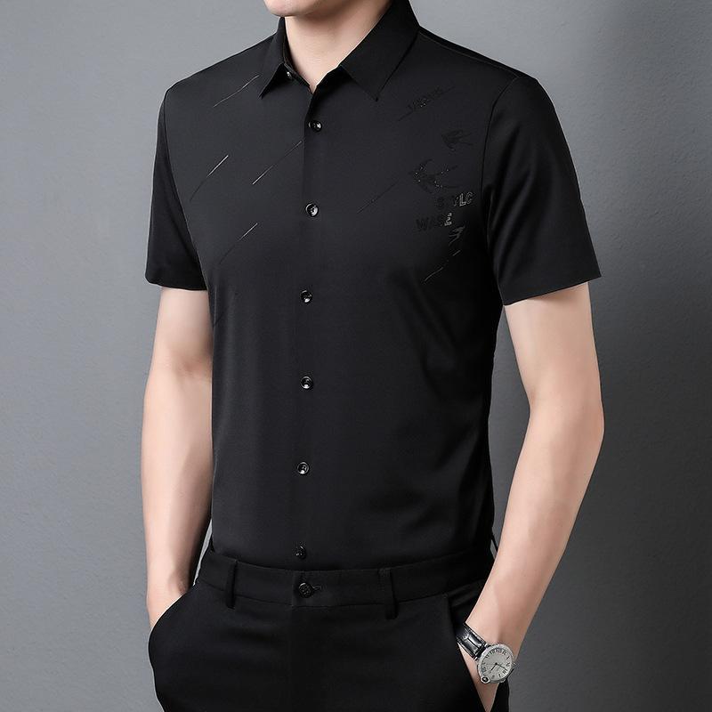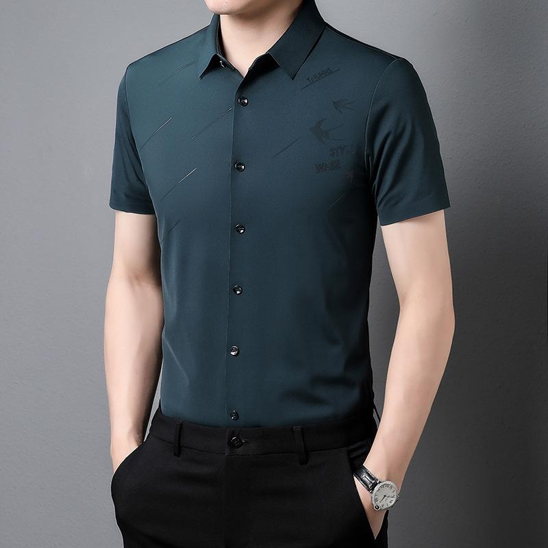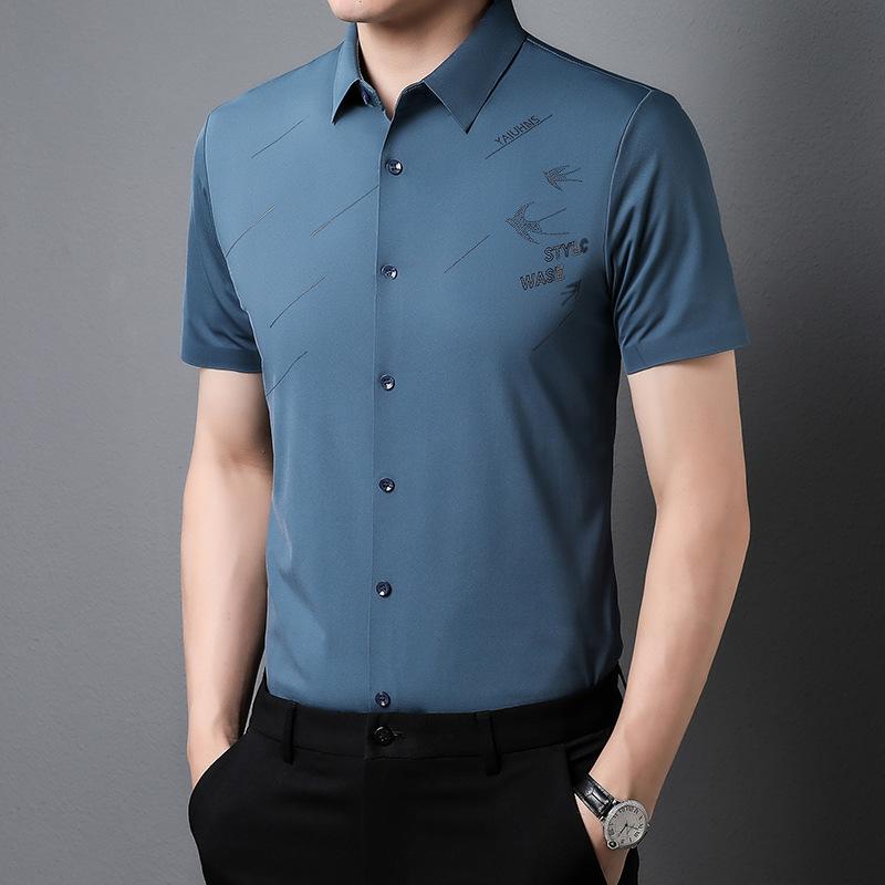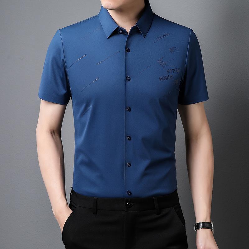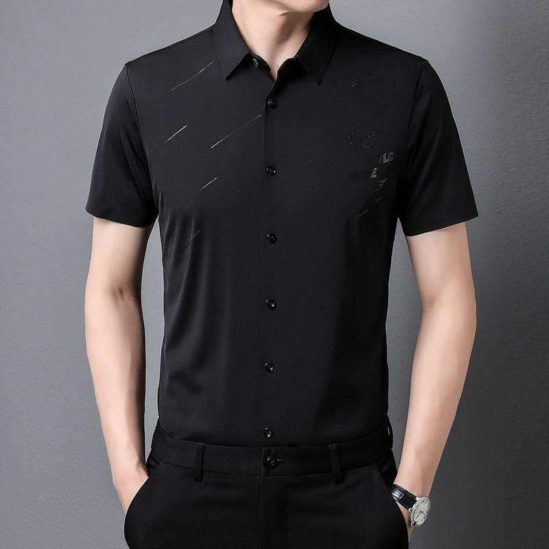 Мужская бесшовная рубашка с короткими рукавами, летняя, тонкая, для молодежи и мужчин среднего возраста, деловая, повседневная, из нейлона и эластичной ткани, не требующая глажки