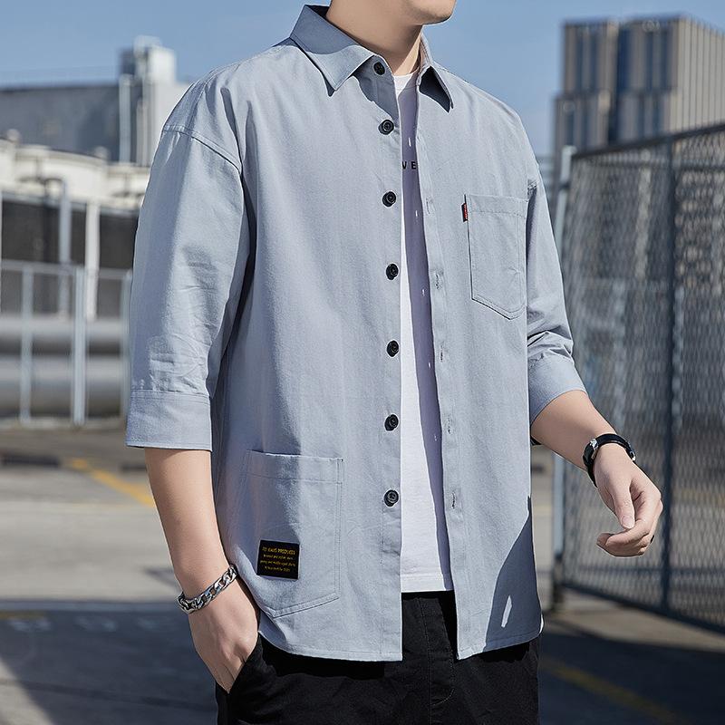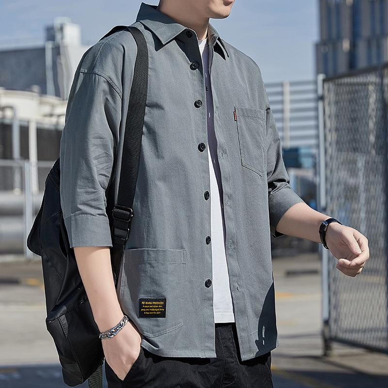 Мужская рубашка с рукавами до локтя на весну и осень, свободная повседневная модель, не требующая глажки, мужская рубашка на весну и осень