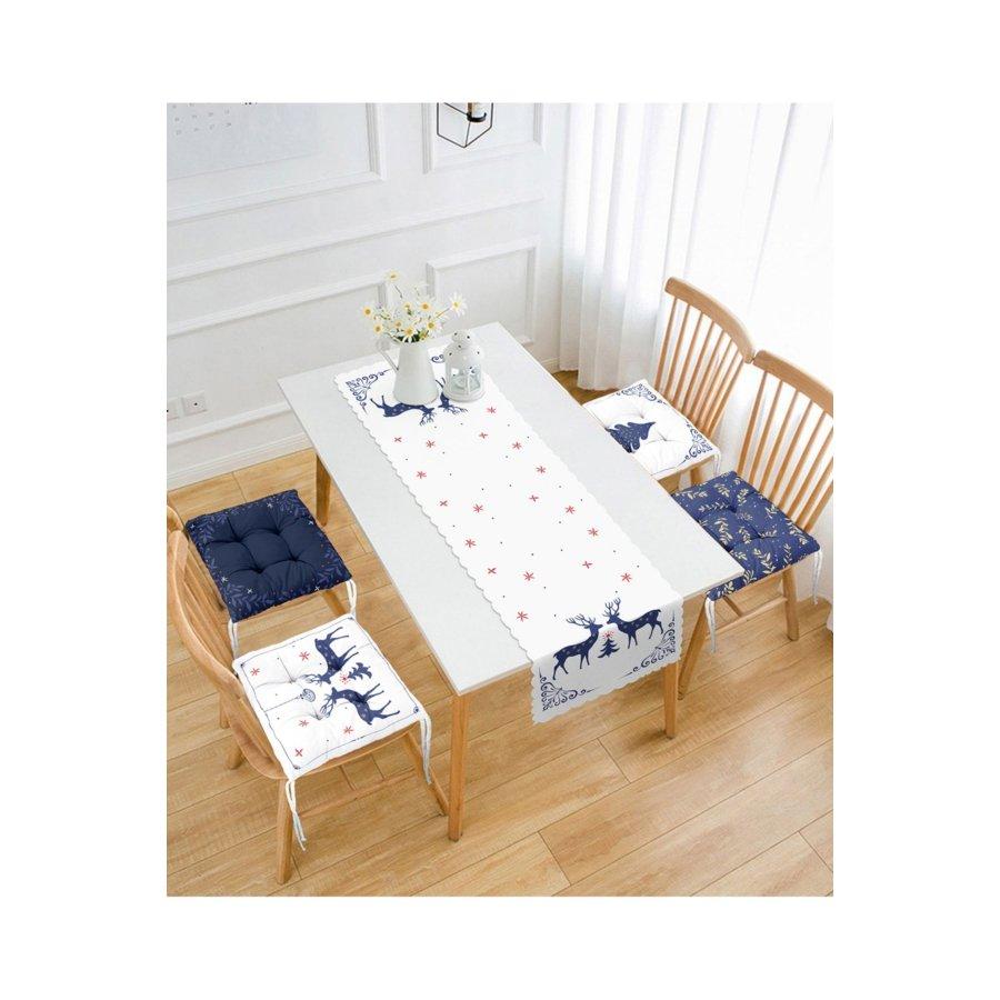 Набор подушек для стула с новогодним тематическим принтом оленя / 4 квадратных подушки для стула 40×40 см и 1 дорожка