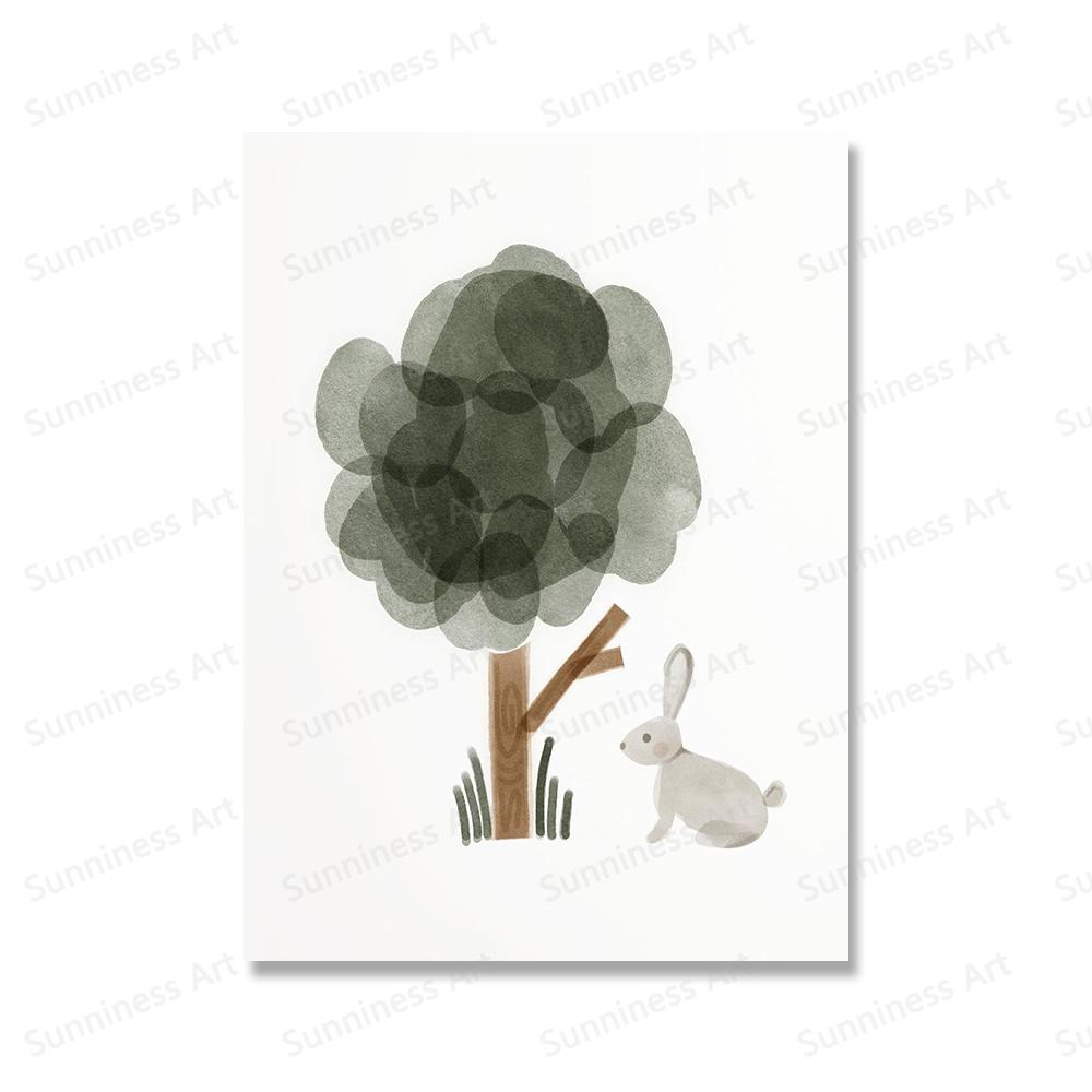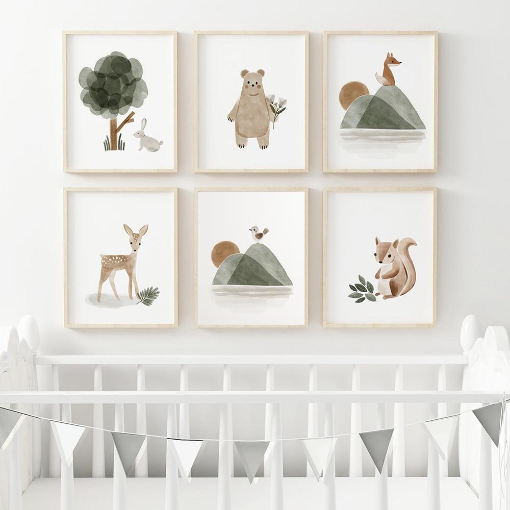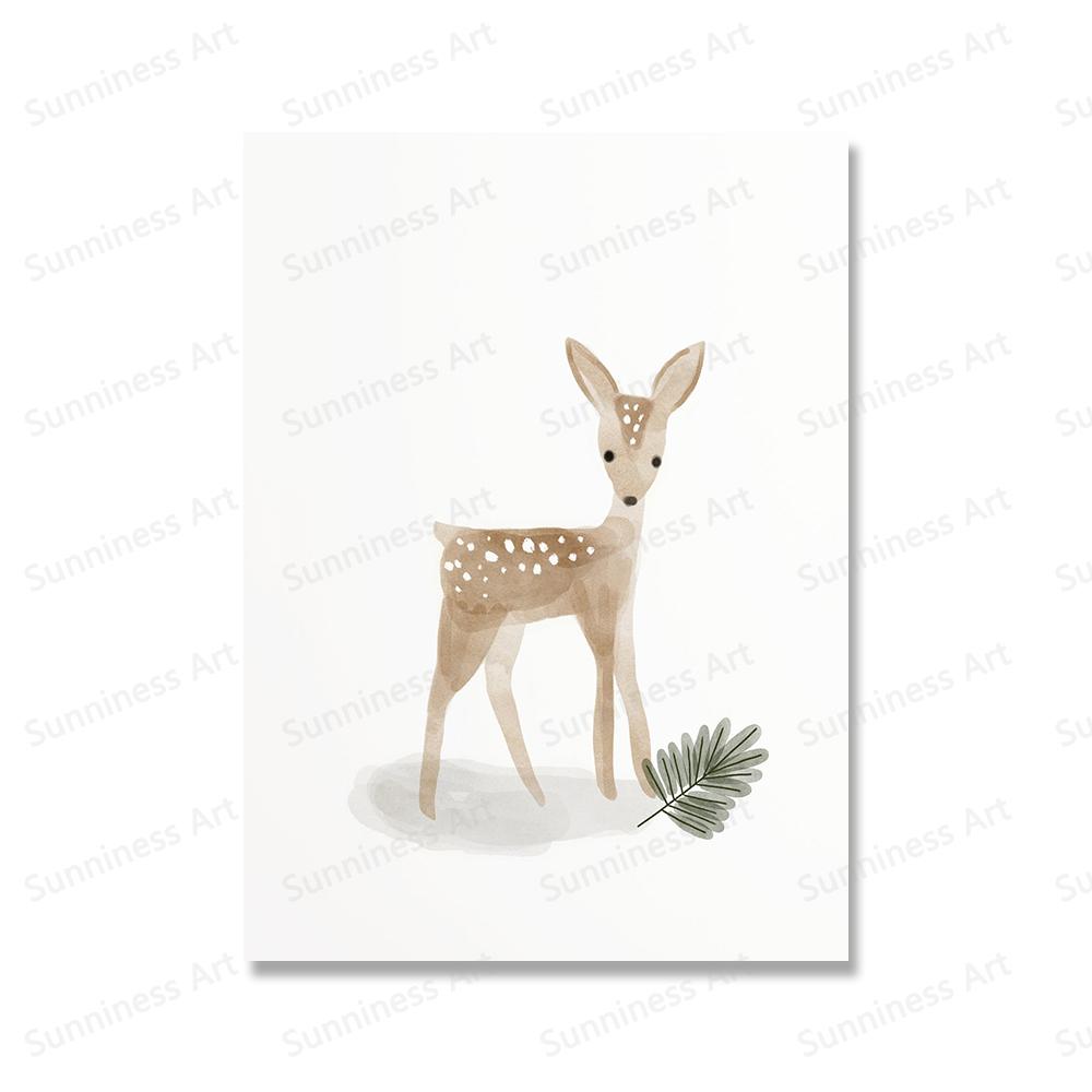 Олень, лиса, кролик, медведь, лесная детская настенная живопись, холст, картина, скандинавские постеры, настенные картины в стиле бохо для декора детской комнаты