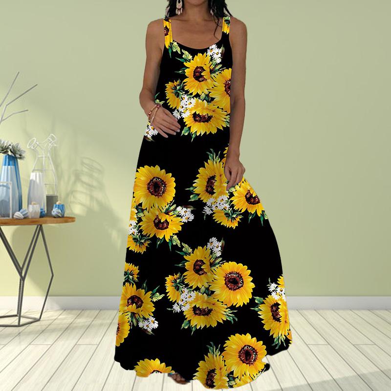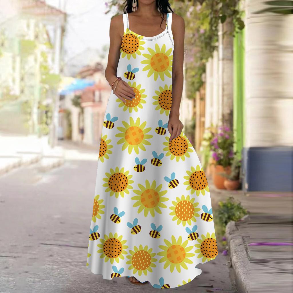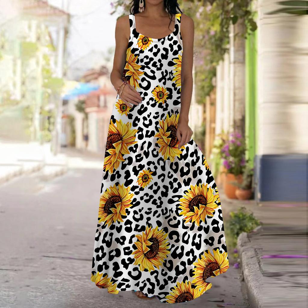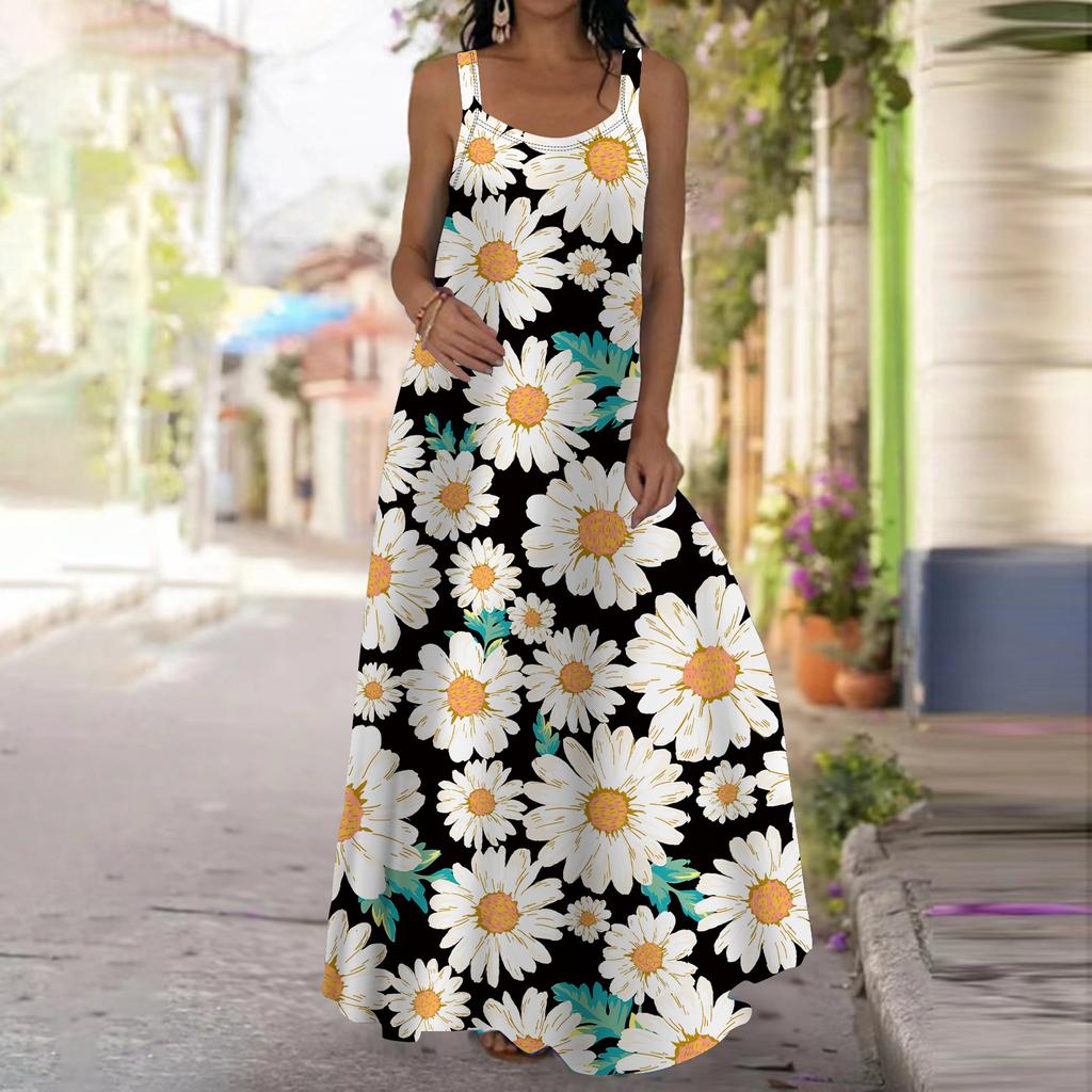 Женское платье-комбинация Длинное платье макси Белое платье с принтом хризантем Весна и лето Досуг