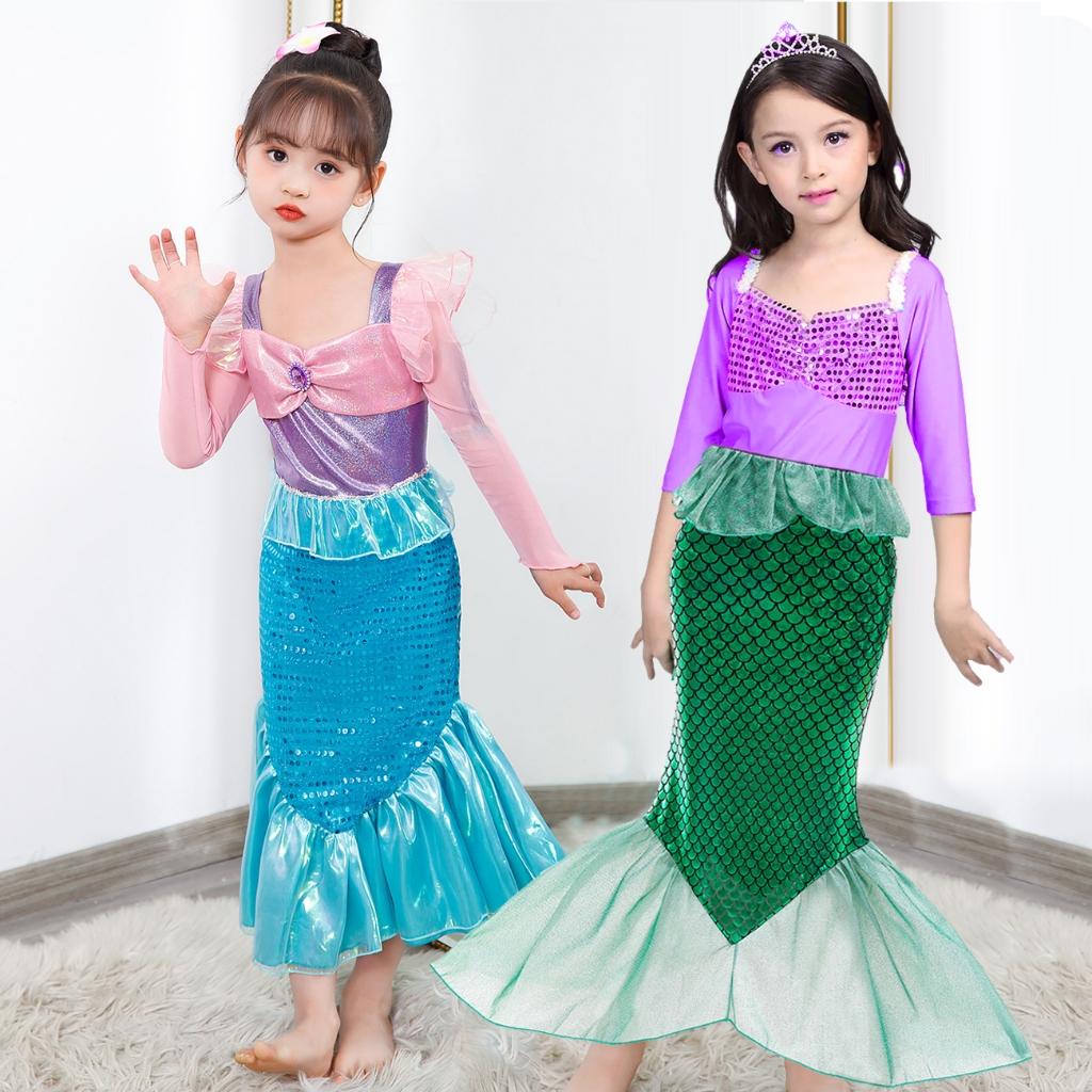 Платье принцессы для девочек, летний костюм Русалочки, детское нарядное платье для дня рождения, одежда с длинными рукавами для девочек