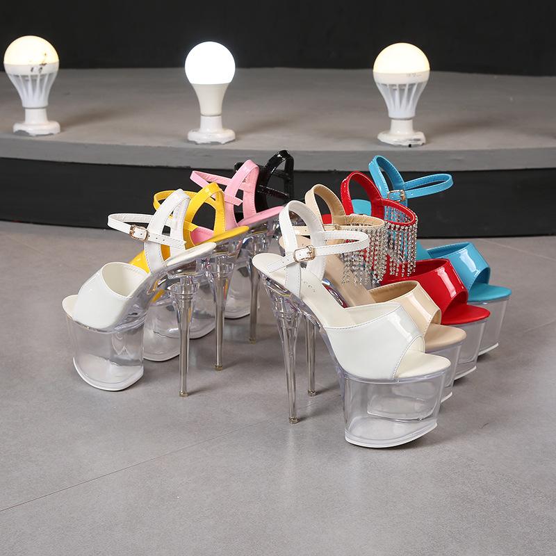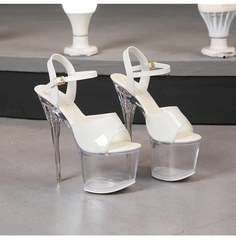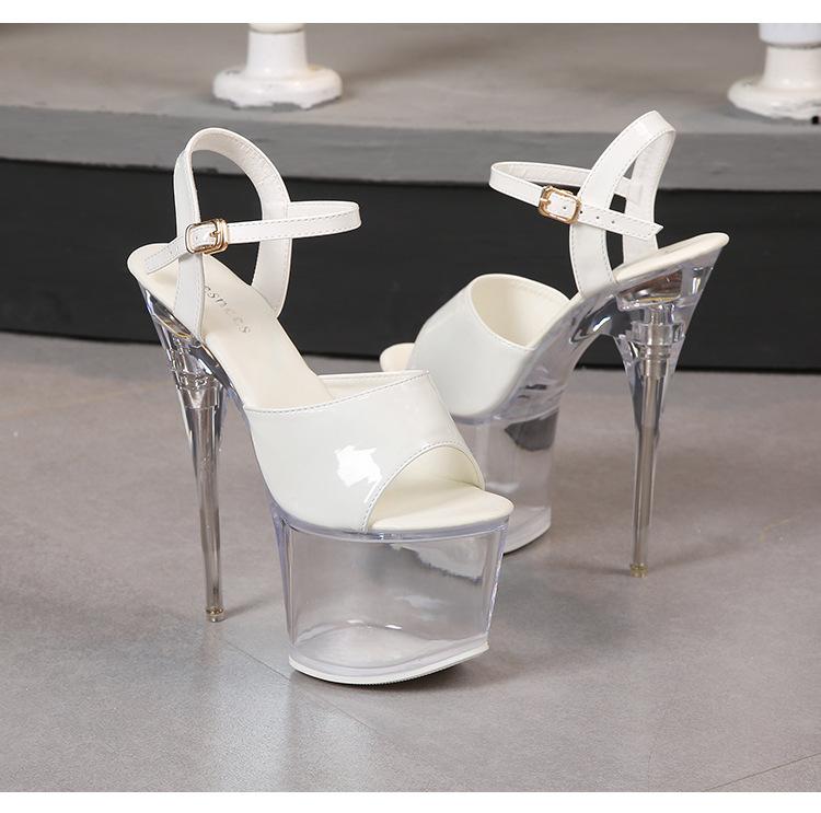 Женские босоножки на прозрачной платформе, черные, 18 см, прозрачная подошва, босоножки на платформе с высоким каблуком, открытые женские танцевальные туфли LFD-10368-20