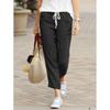 Летние женские повседневные брюки из хлопка и льна, легкие однотонные эластичные брюки с высокой талией и карманами, осенние зеленые, красные модные брюки