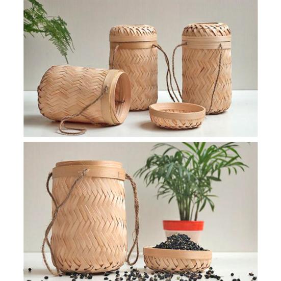 Соломенная корзина для хранения ручной работы с крышкой, органайзер из ротанга с чайными листьями