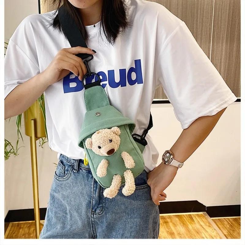 Нагрудная сумка с милым медведем для девочек, диагональная сумка, маленькая японская повседневная сумка-мессенджер, сумка для телефона, сумки через плечо, сумки с отверстием для наушников