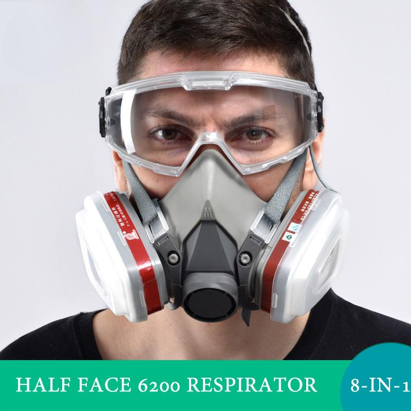 7-в-1, 6200 пыли, половина лица, многоразовый респиратор, двойные фильтры, защитные очки для окраски, распыления, защита от работы