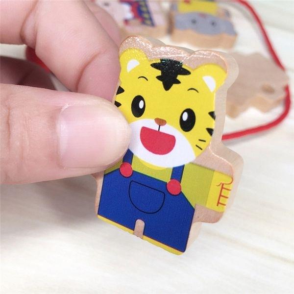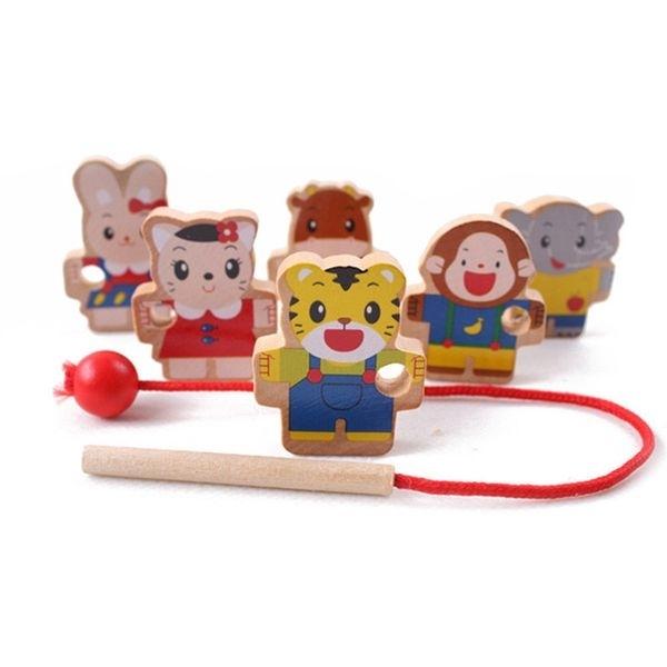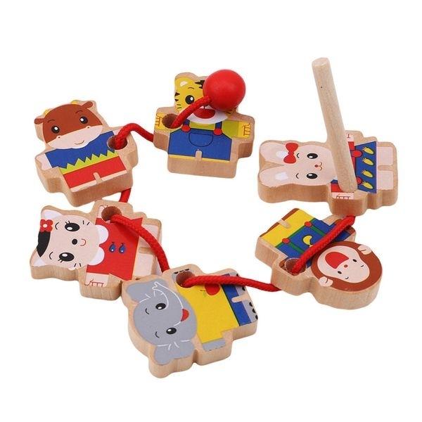 Нанизывание деревянных бусин на веревку Монтессори