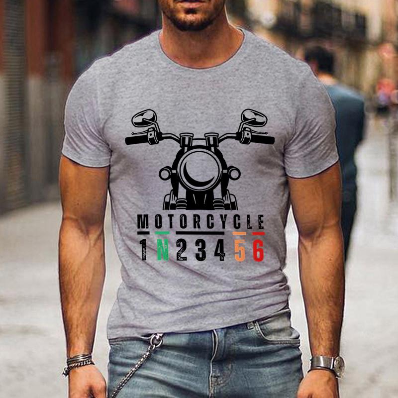 Мужская уличная одежда 1N23456 Мотоциклетная коробка передач с принтом мотоциклиста Мужская футболка с коротким рукавом с круглым вырезом Одежда Футболка для мужчин