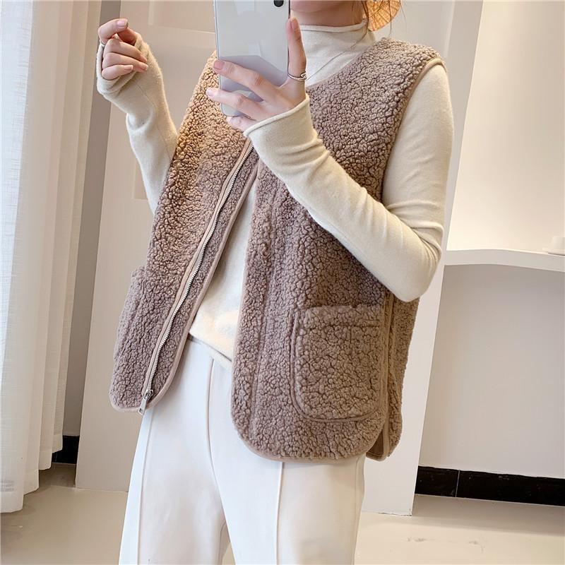 Плюшевый жилет из ягненка и цельный меховой жилет, осенне-зимняя верхняя одежда, женский жилет