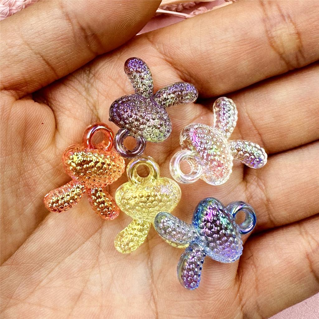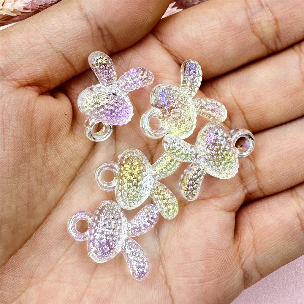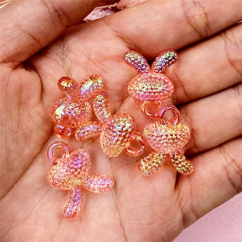 Прозрачные красочные ювелирные аксессуары, акриловые изысканные браслеты «сделай сам», кулон в виде головы кролика, бусины, подвесное отверстие, 17,5*21 мм, с УФ-покрытием, 5 шт.