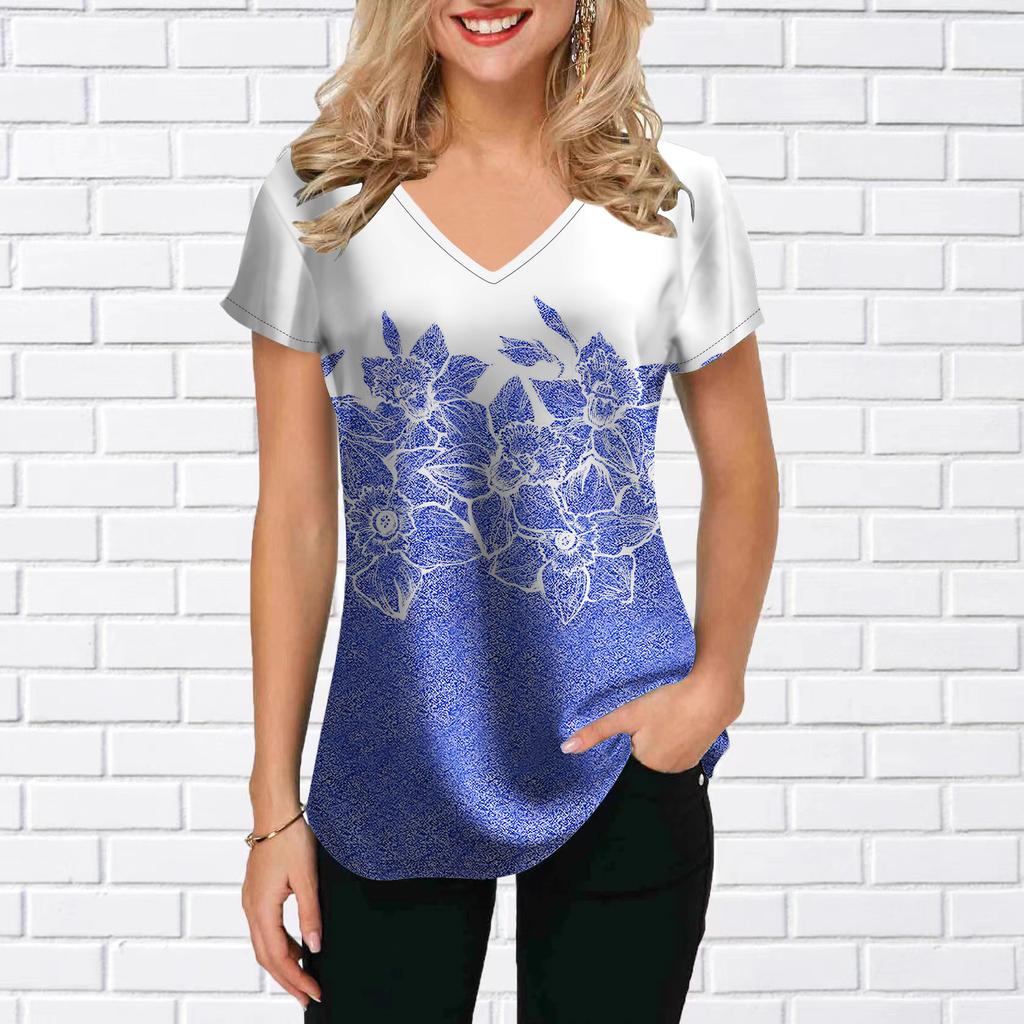 Женские топы с v-образным вырезом и короткими рукавами, подсолнечник, синие цветы, принт, свободная футболка, повседневная блузка — купить товар онлайн с бесплатной доставкой по всему миру!