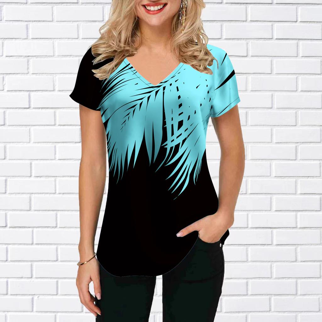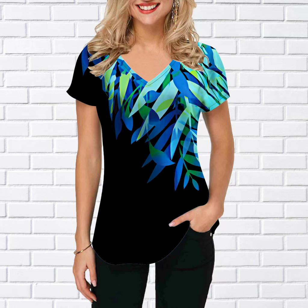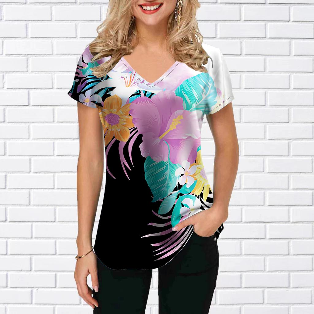 Женские топы с V-образным вырезом и коротким рукавом с принтом подсолнечника и ипомеи, свободная футболка, повседневная блузка
