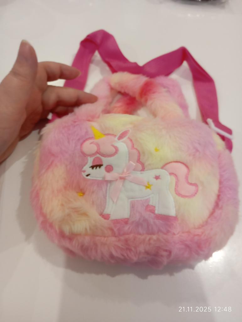 Очень милая сумочка. Мягкая, пушистая и красивая! Взяли для внучки на новогодние праздники. Понравилось всё и сама сумочка , и наклейки, и бусинки, и заколки. Внучка будет рада такому подарочку. Всё замечательно.