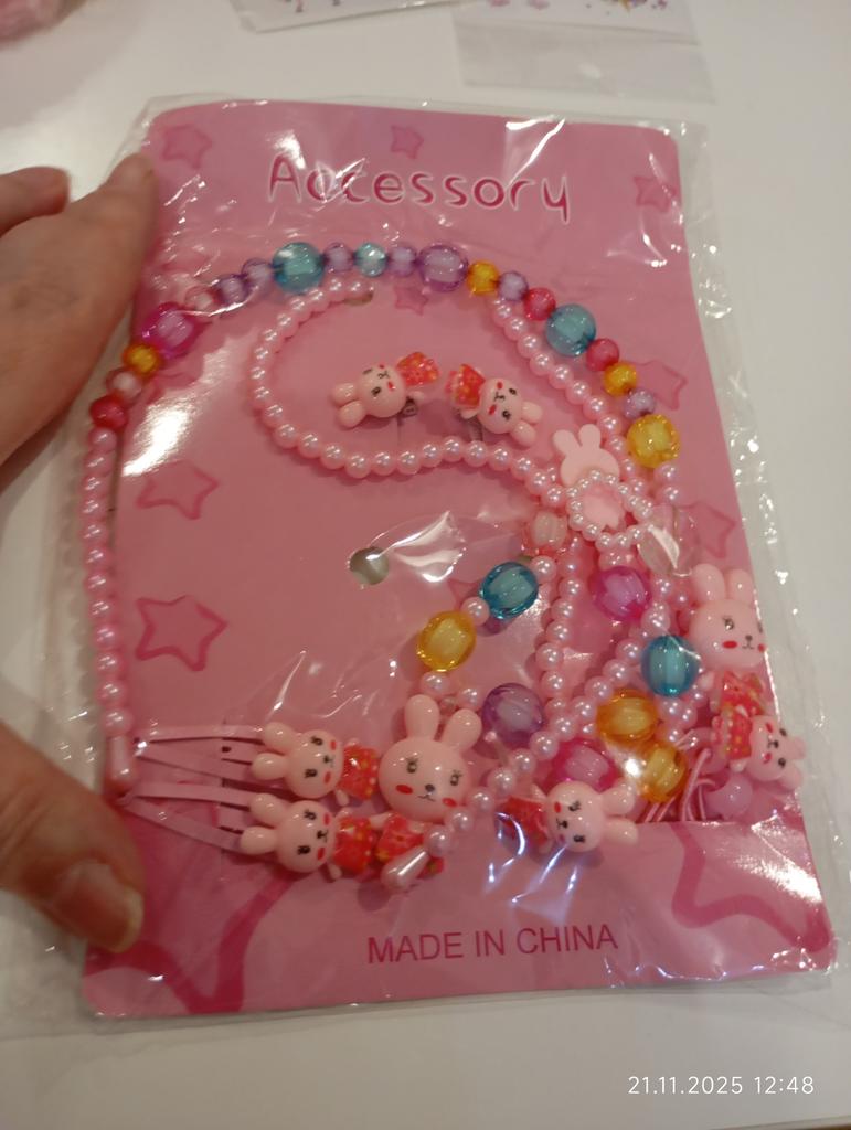 Классная сумочка, дочке очень понравилась спасибо рекомендую, в комплект входит ожерелье, клипсы, резинка для волос, заколки, браслет, ободок и переводные наклейки